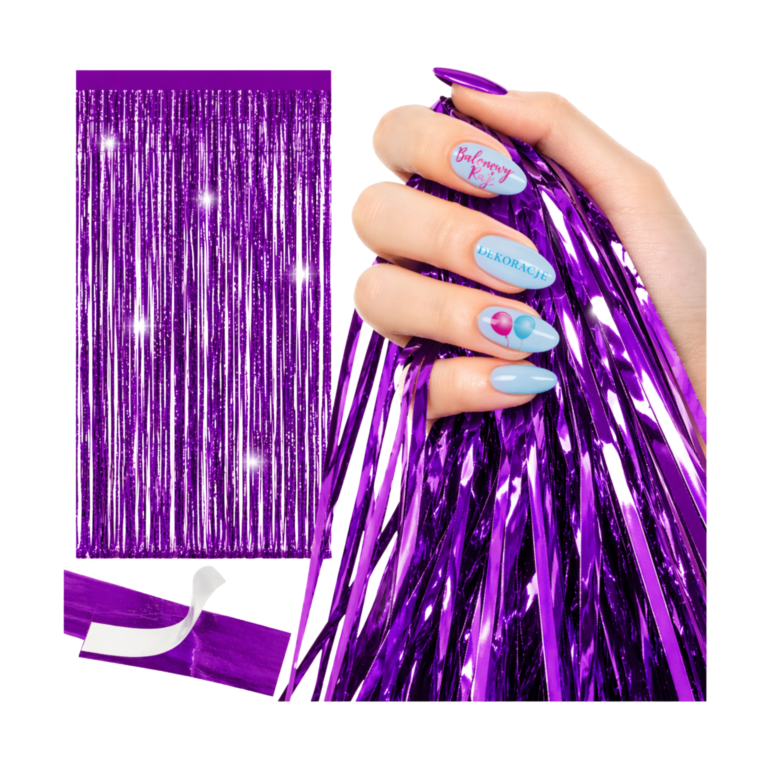 Kurtyna fioletowa 100x200cm foliowa zasłona frędzle dekoracyjna ścianka