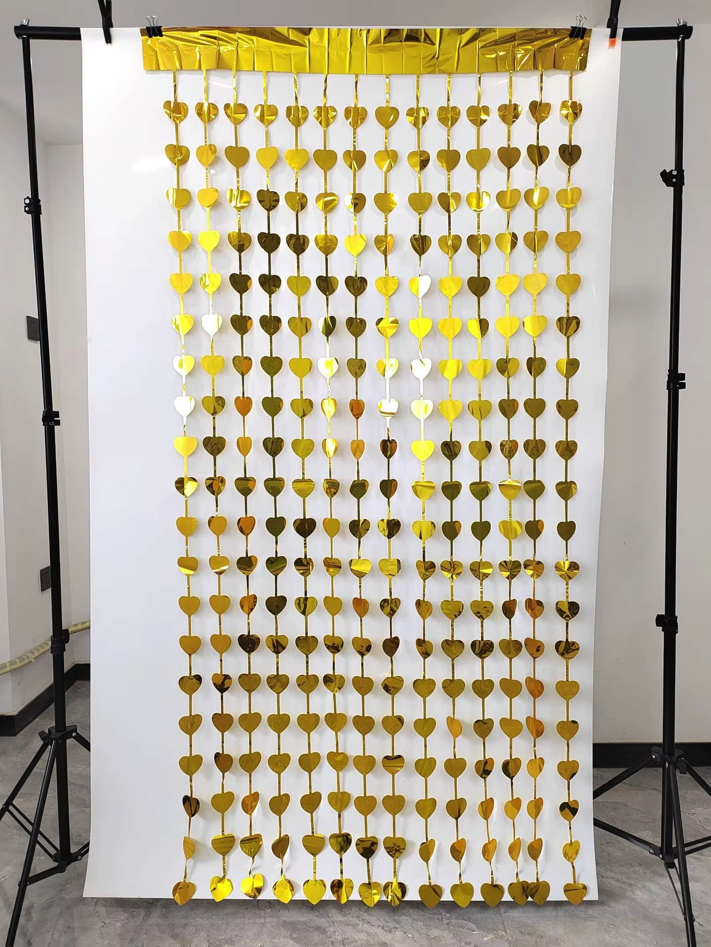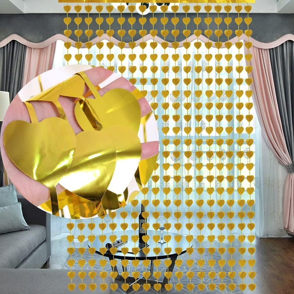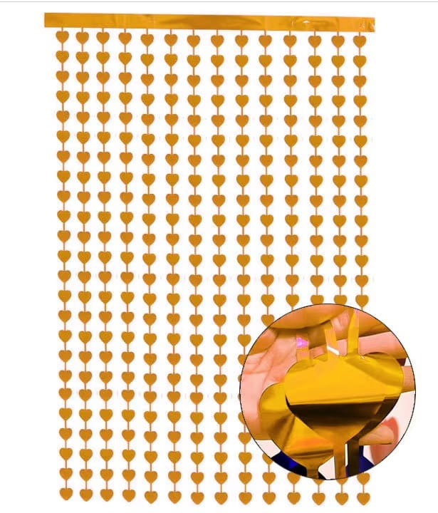 Kurtyna dekoracyjna złota serca foliowa Walentynki Zaręczyny zasłona