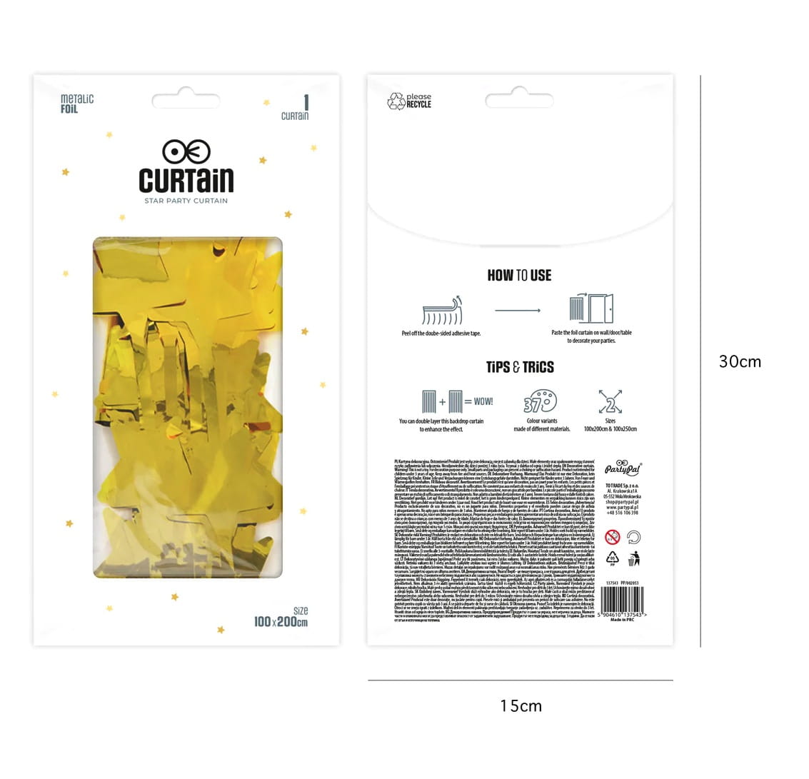 Kurtyna imprezowa Gwiazdki złota 100x200cm