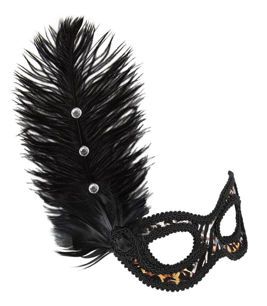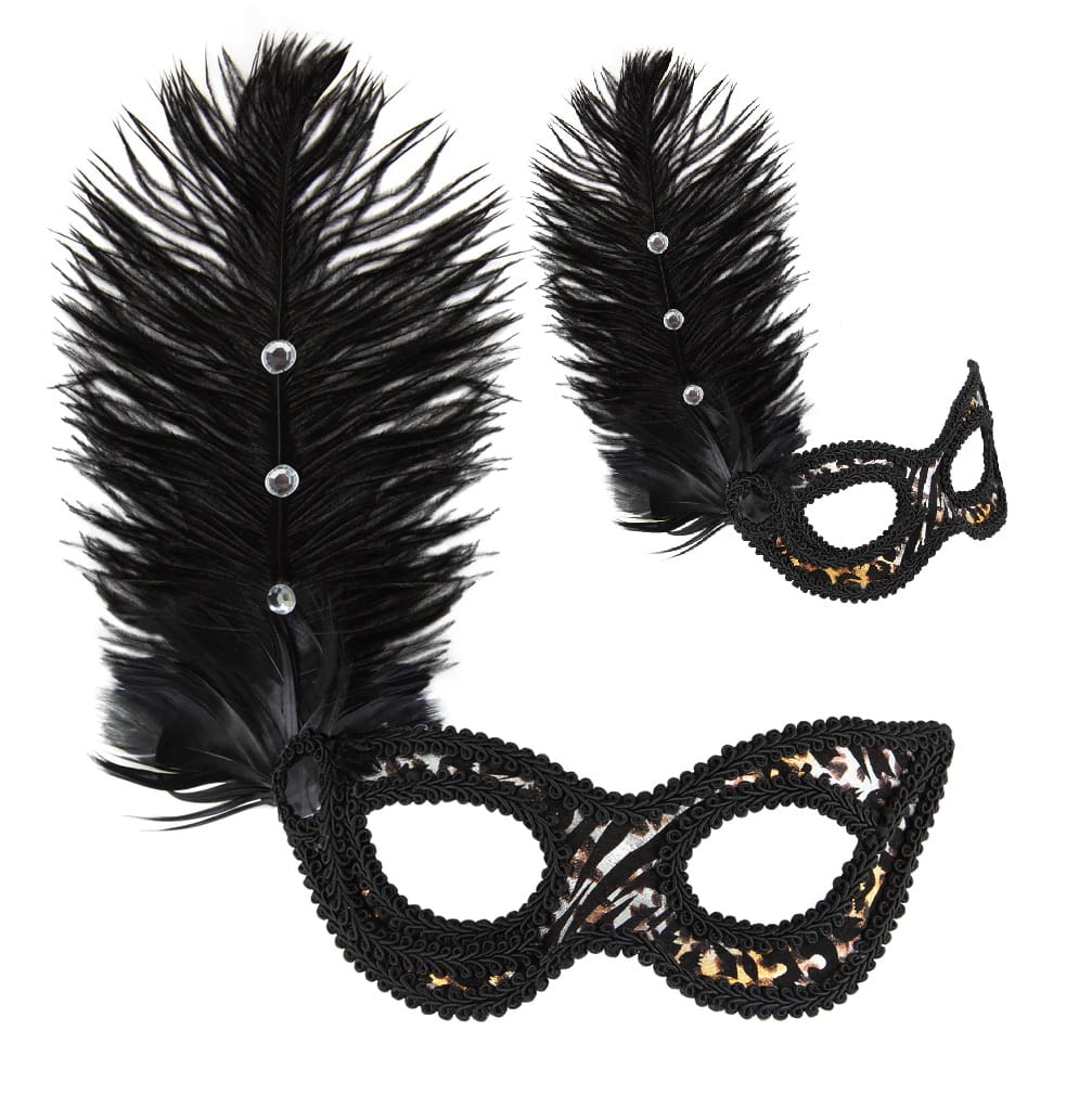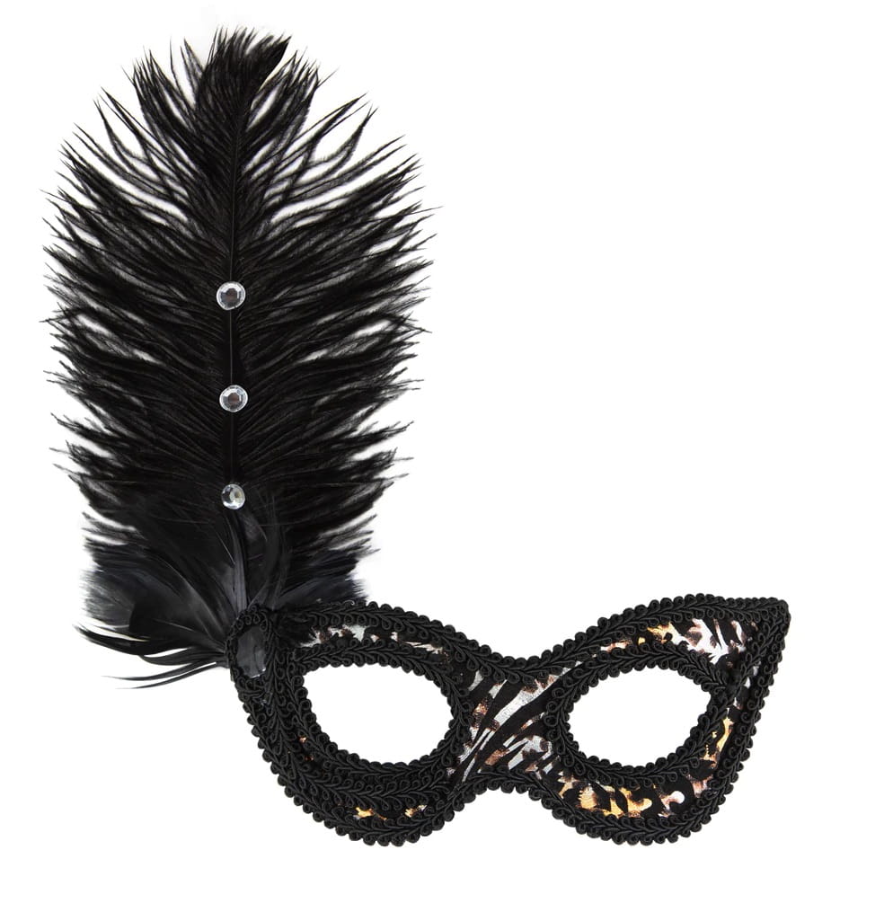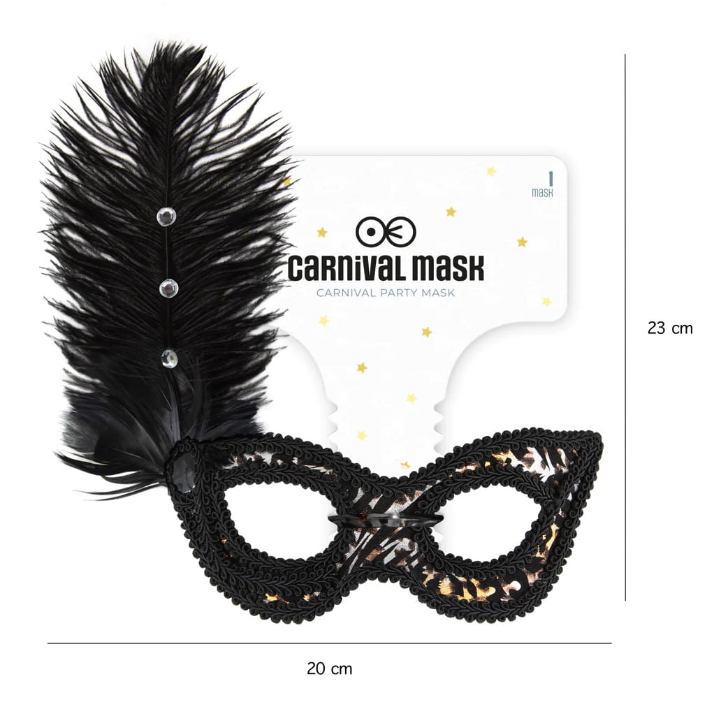 Maska karnawałowa Lampart z piórami 18x24cm