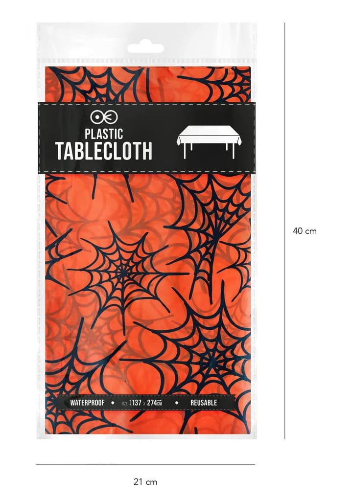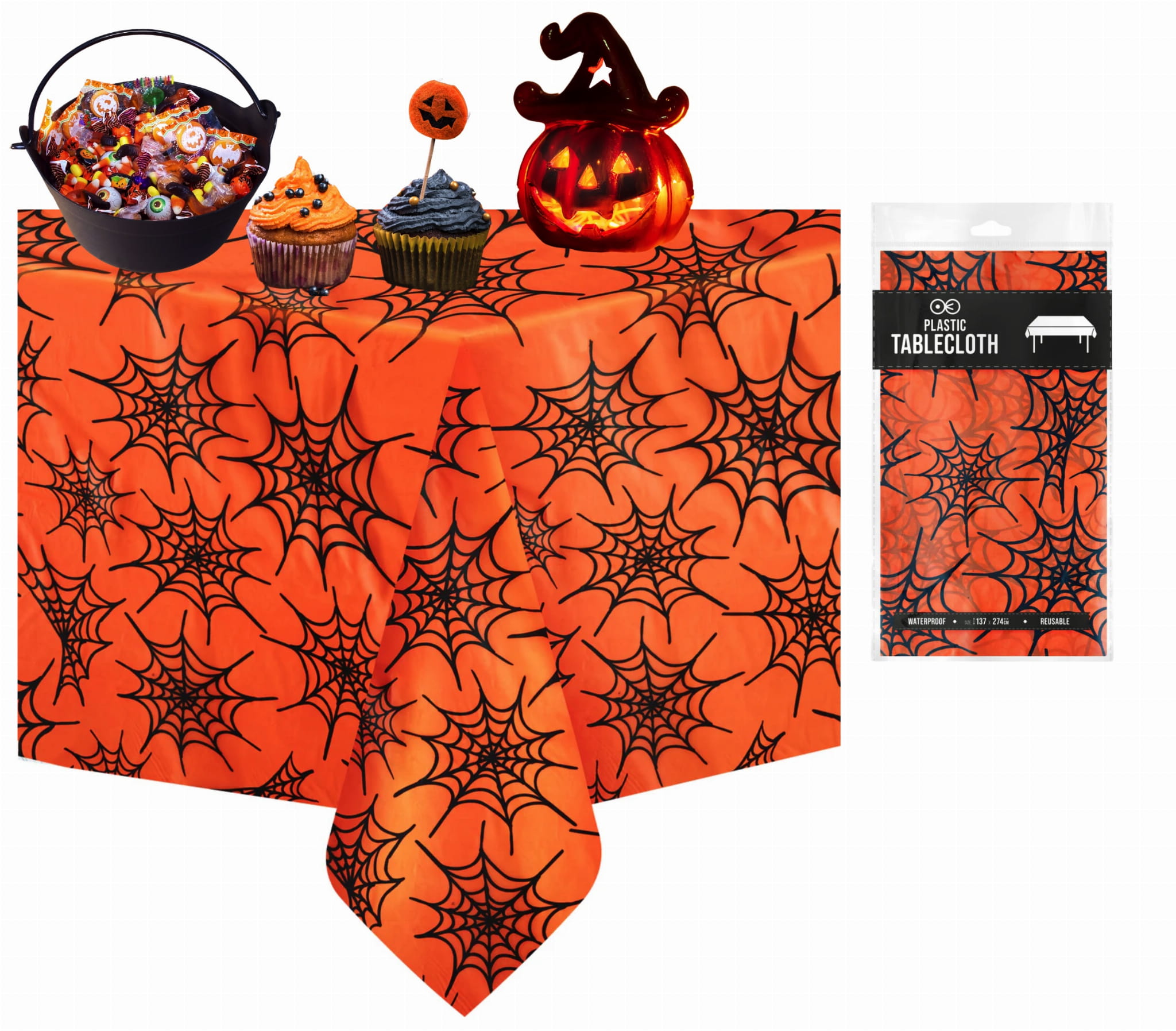 Obrus Halloween pajęczyny pomarańczowo-czarny 137x274cm