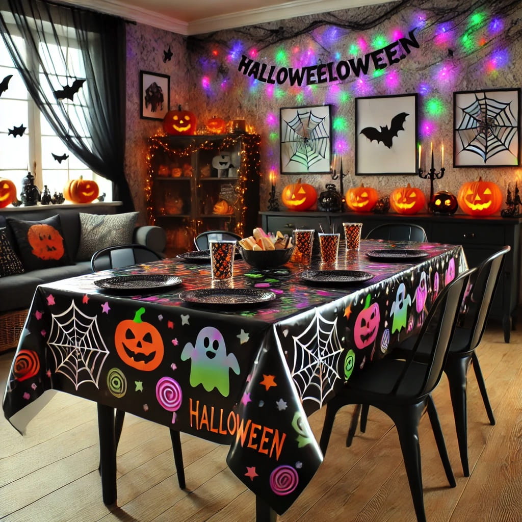 ⭐️ Stwórz wyjątkową atmosferę: Czarne tło obrusu z motywami Halloween przyciąga uwagę i dodaje charakteru każdemu wnętrzu. Twoja impreza nabierze niepowtarzalnego klimatu, a goście będą zachwyceni stylowym wystrojem.