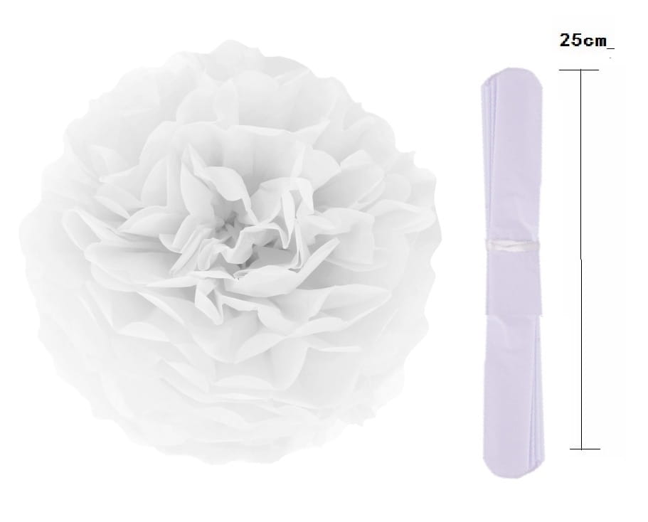 Pompon bibułowy biały 25 cm