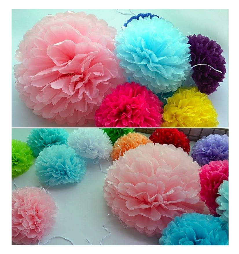 Pompony z bibuły to idealna ozdoba na Chrzest Święty, Komunię, ślub i wesele jak również na imprezę okolicznościową. Jest to aktualnie bardzo modny dodatek do wystroju wnętrza na każdą imprezę. Świetnie wpasują się w girlandę z balonów.