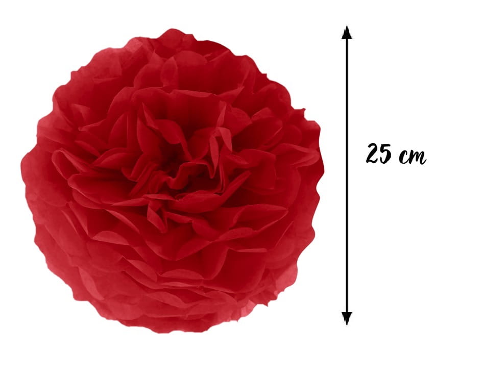Pompon bibułowy czerwony 25 cm