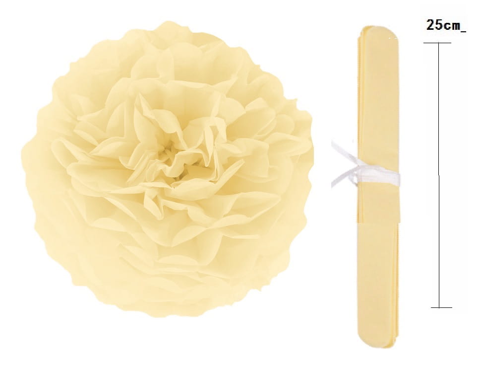 Pompon kremowy bibułowy 25 cm wiszące dekoracje Chrzest Ślub