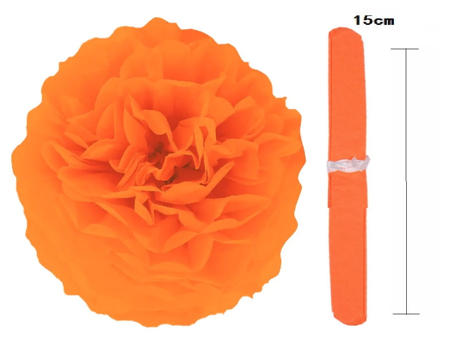 Pompon bibułowy pomarańczowy 15 cm