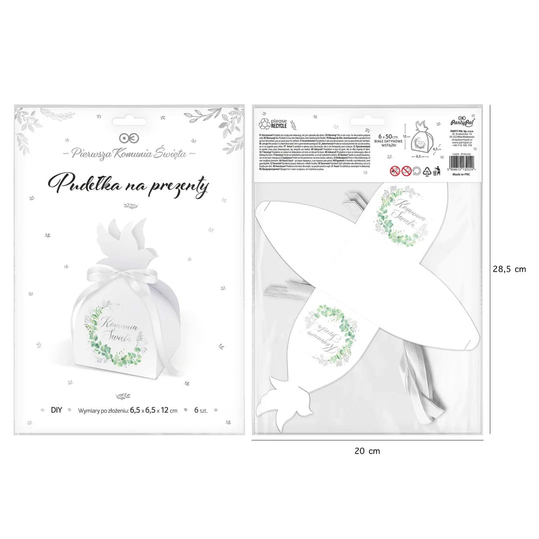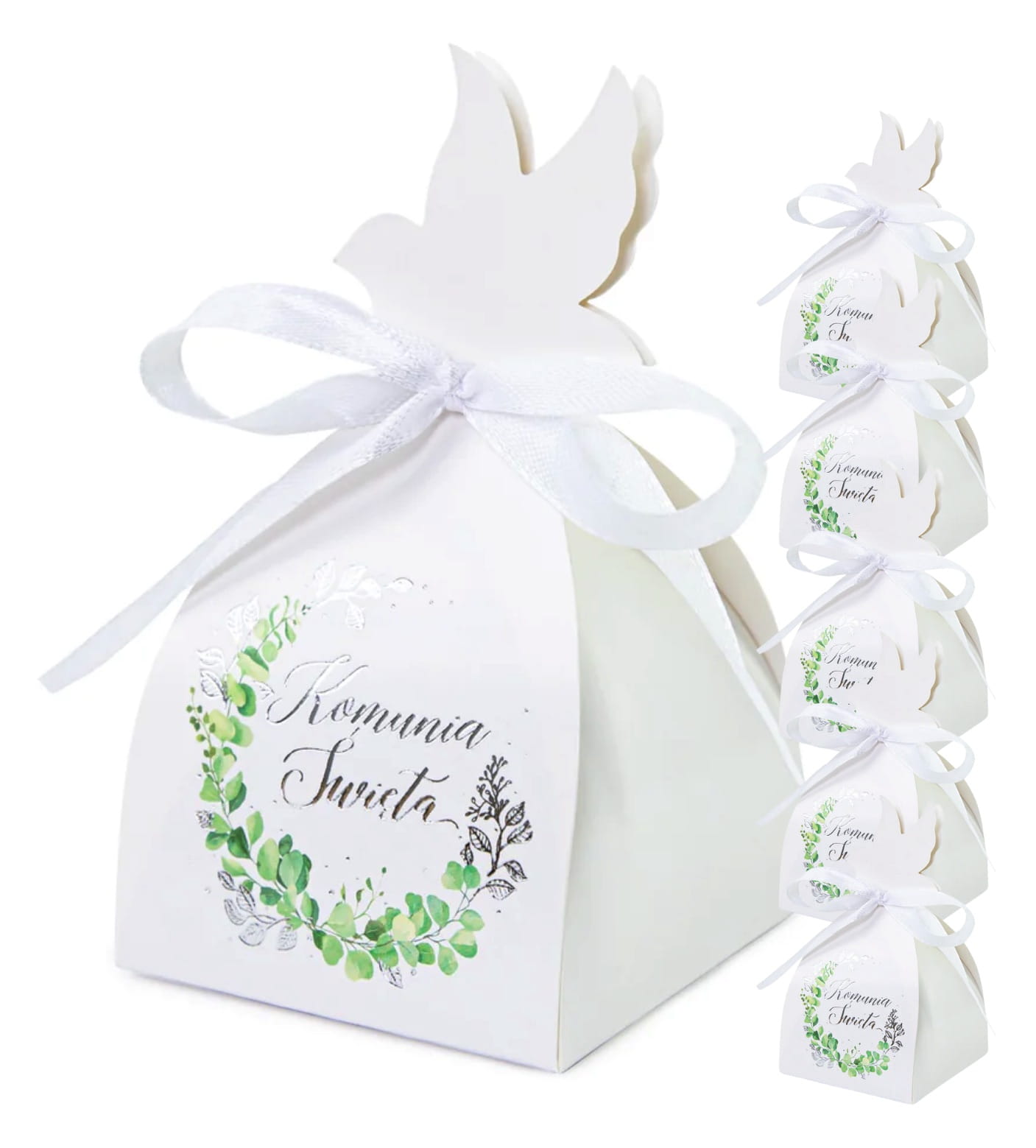 Pudełka na podziękowanie prezent dla gości Eukaliptus srebrny KOMUNIA ŚWIĘTA 6szt. DIY