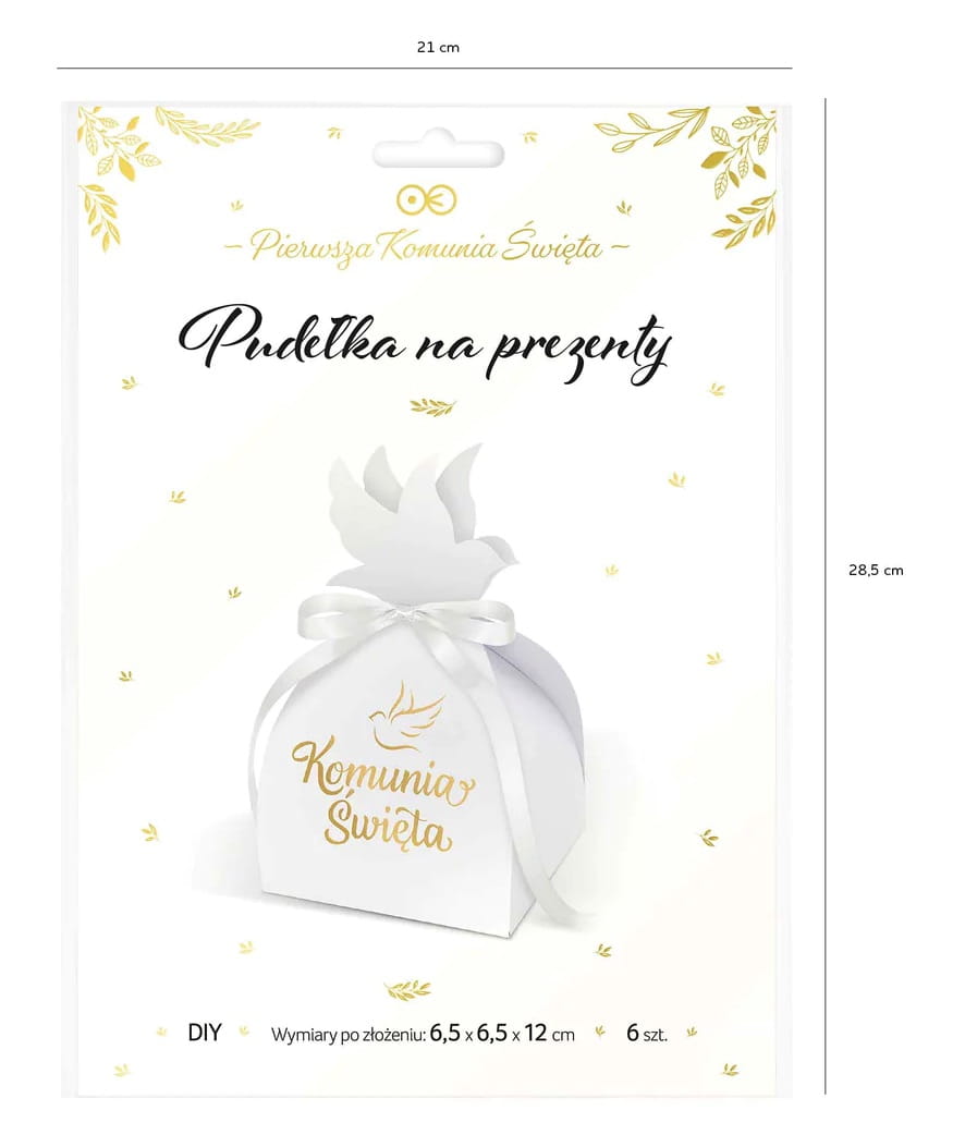 Pudełka na podziękowanie prezent dla gości Komunia Święta biało-złote 6szt. DIY