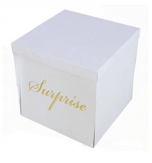⭐️ Elegancka biała kolorystyka z subtelnym złotym napisem „Surprise” sprawia, że pudełko samo w sobie jest elementem dekoracyjnym.