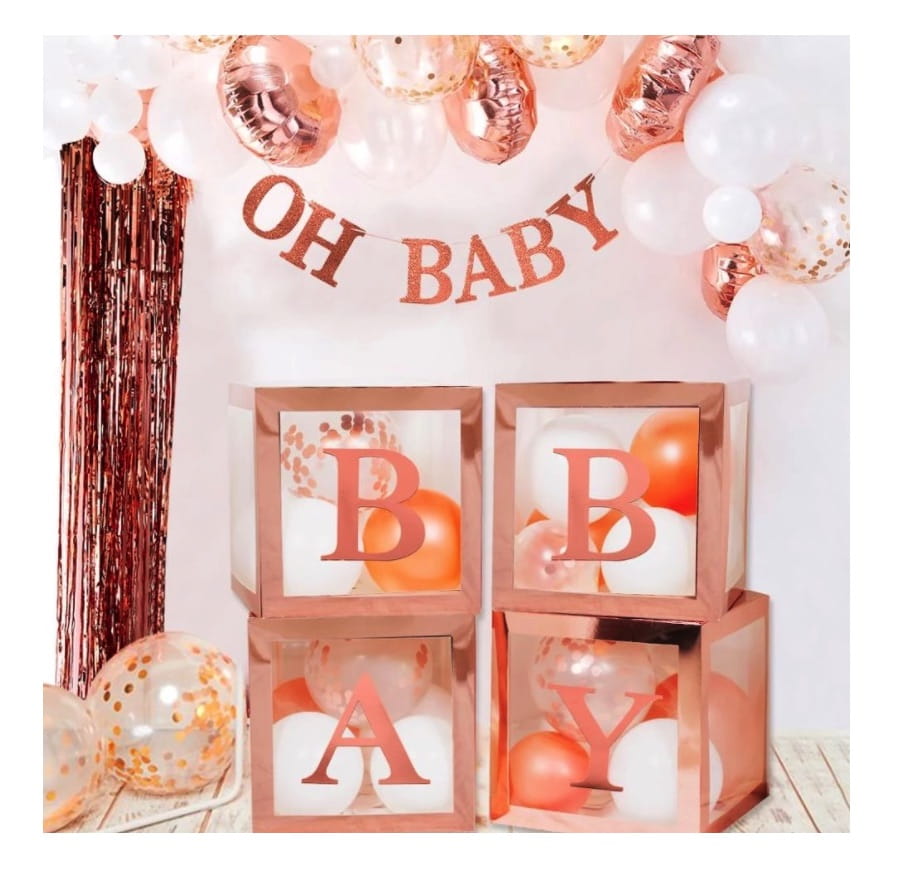 Pudełka na balony BABY rose gold Baby Shower Gender Reveal Party Urodziny Dziewczynki