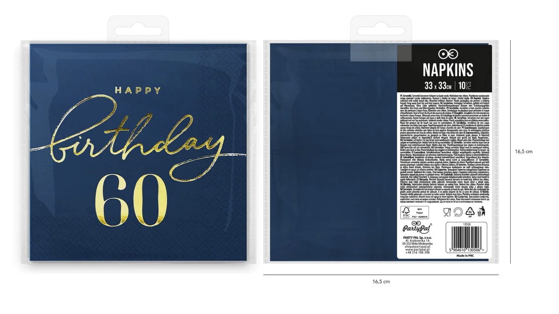 Serwetki GRANATOWE 60 Happy Birthday z napisem 60 Urodziny 60tka 10szt