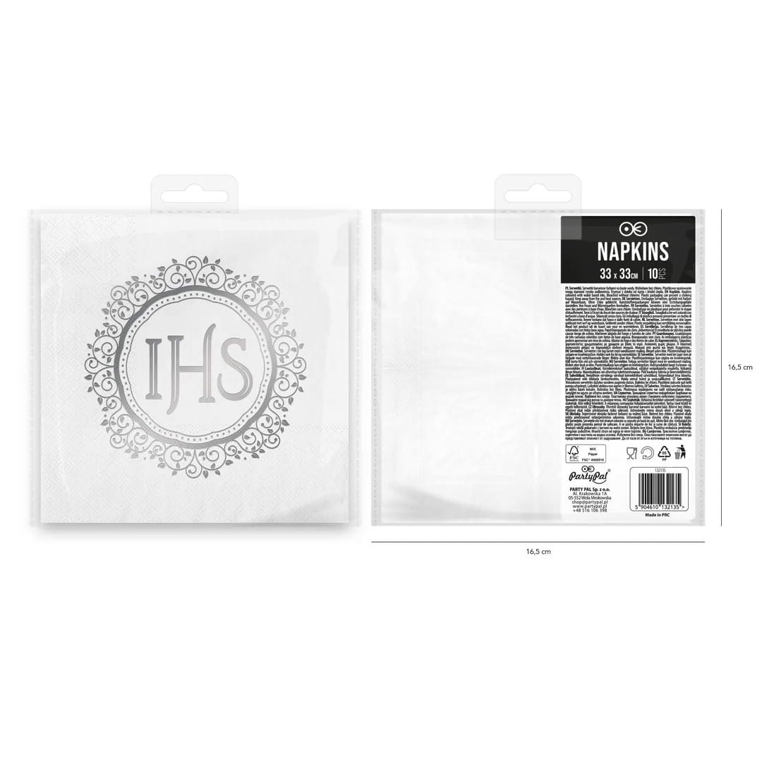 Serwetki papierowe Komunia Święta komunijne IHS biało-srebrne 10szt