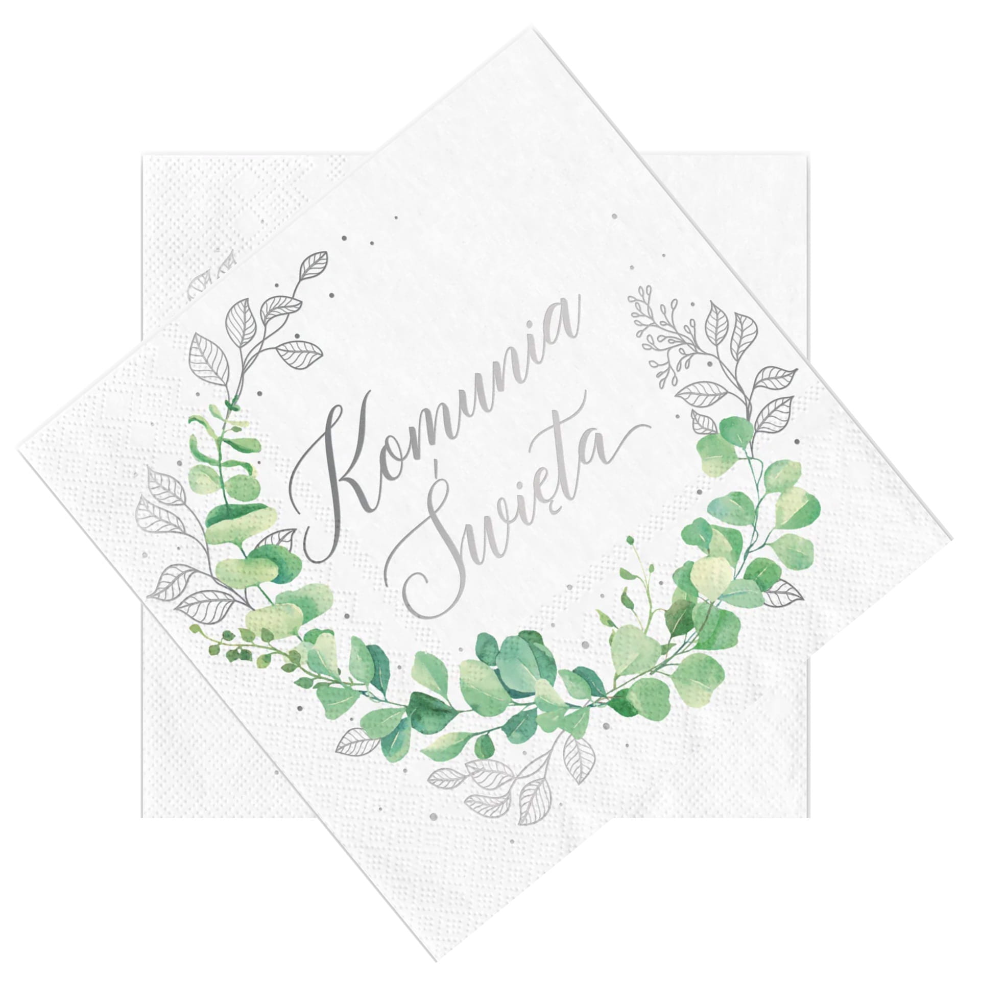 Serwetki KOMUNIA ŚWIĘTA papierowe na Komunię zielono srebrne Gałązki 10szt