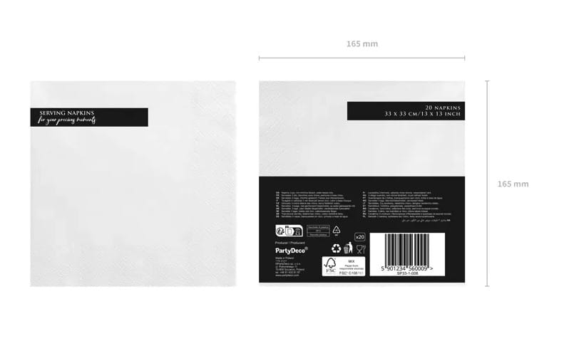 Serwetki papierowe trójwarstwowe białe 33x33cm 20szt