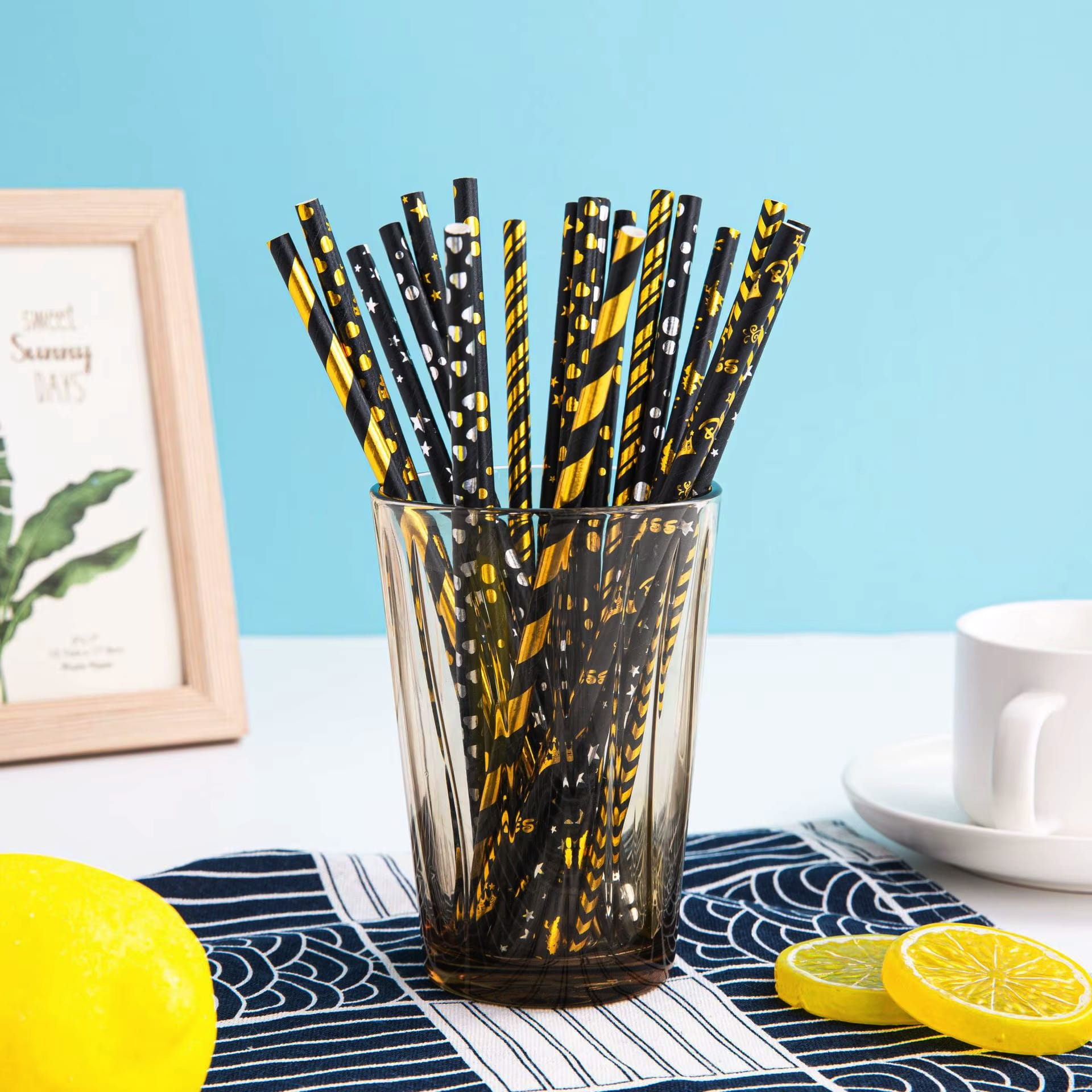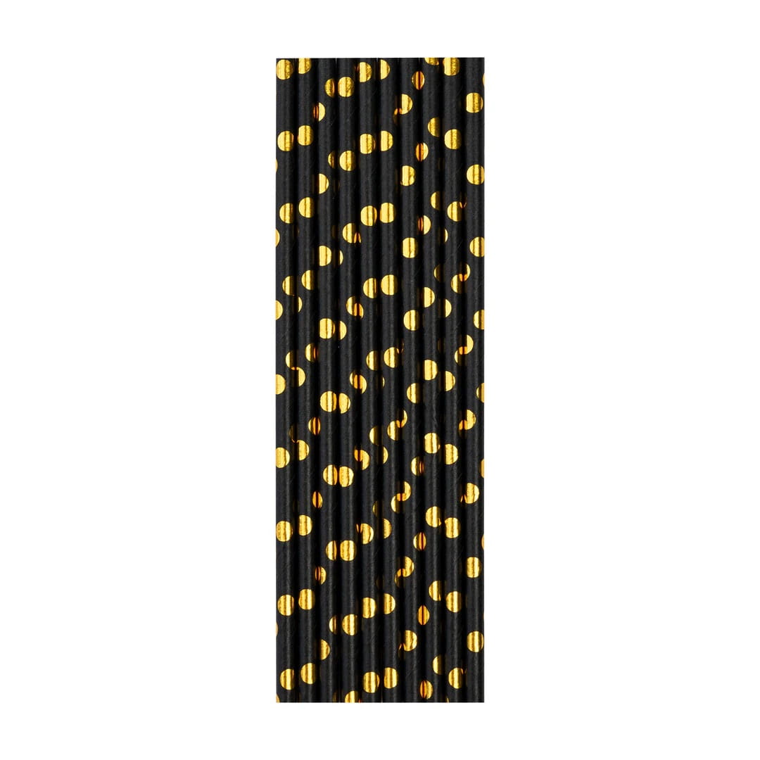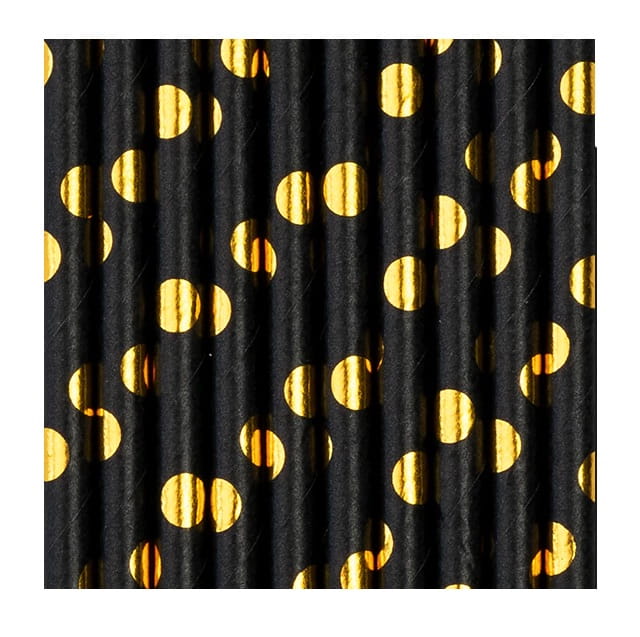 Słomki CZARNE kropki złote papierowe Ekologiczne do zimnych napojów Urodziny 10szt