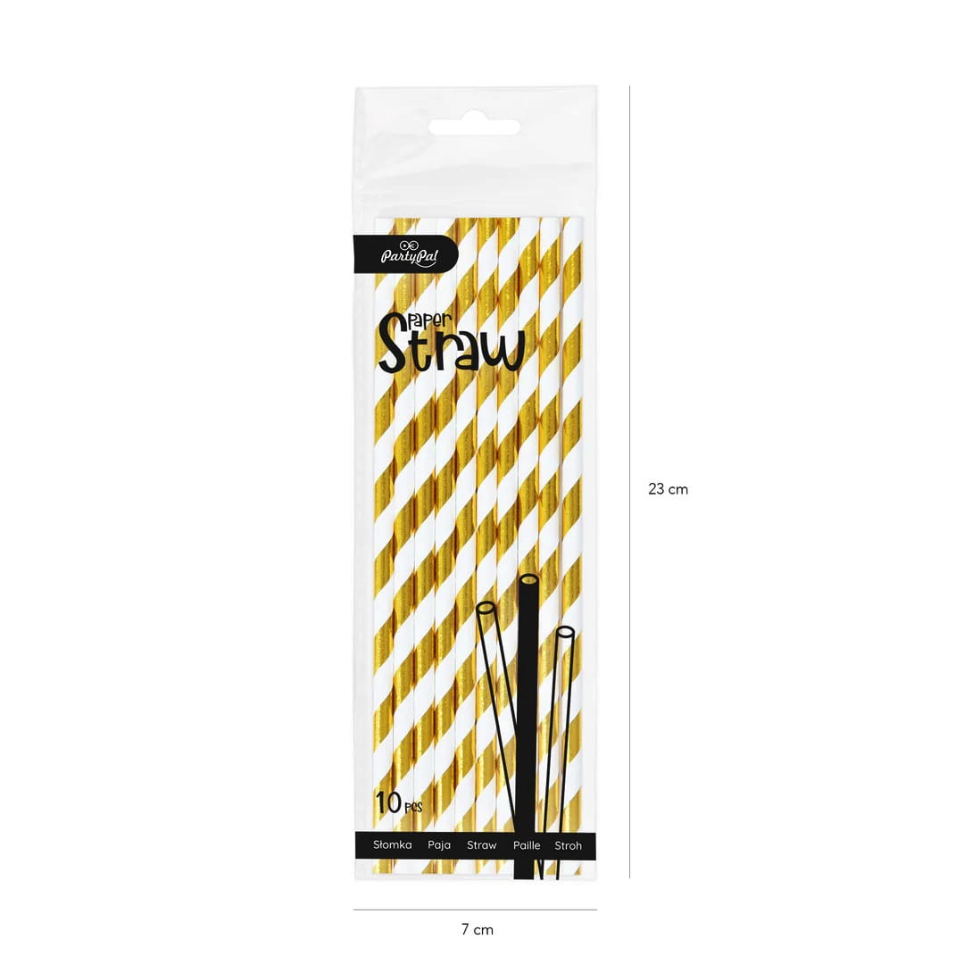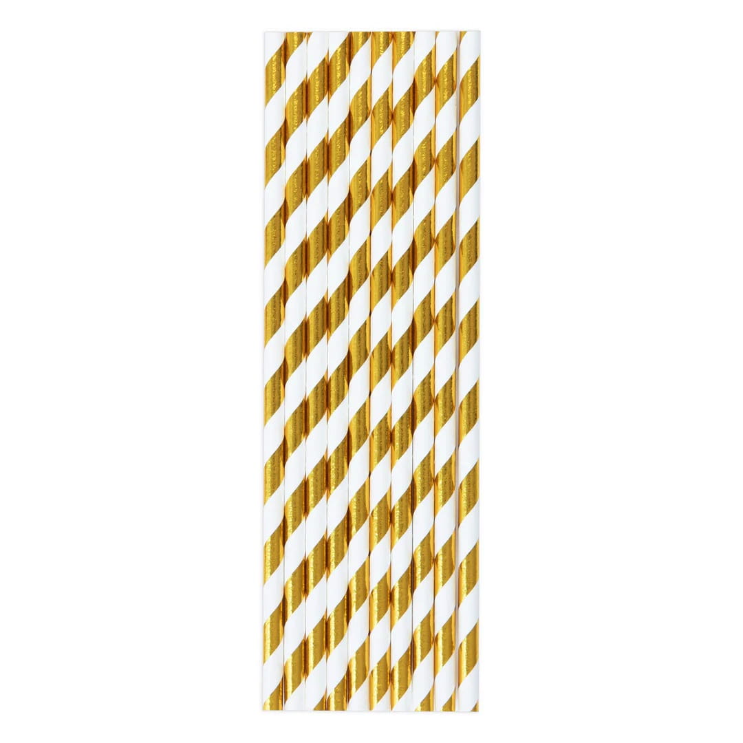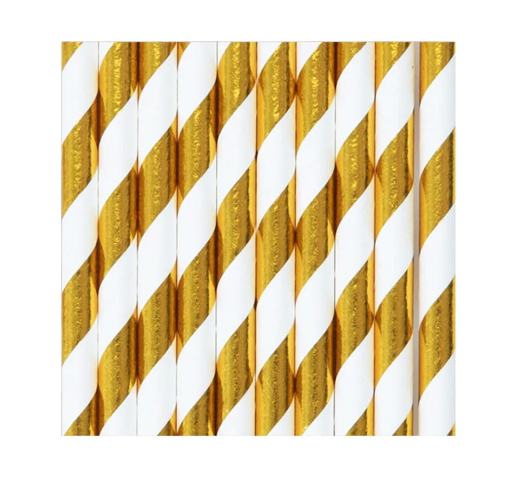 Słomki papierowe paski złote 10szt
