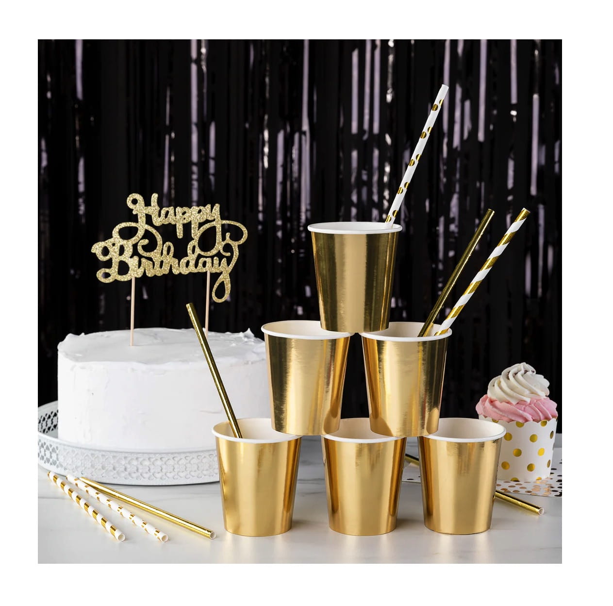 ⭐️ Elegancki design – złote paski dodają stylu każdemu napojowi.