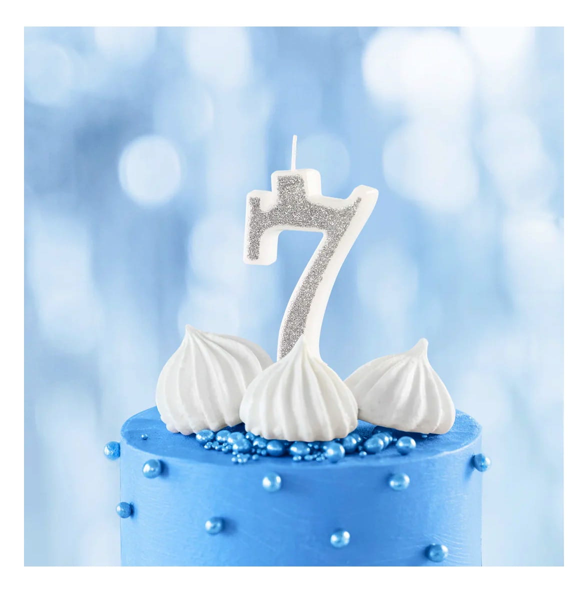Świeczka na tort cyfra 7 srebrna brokatowa cyfra