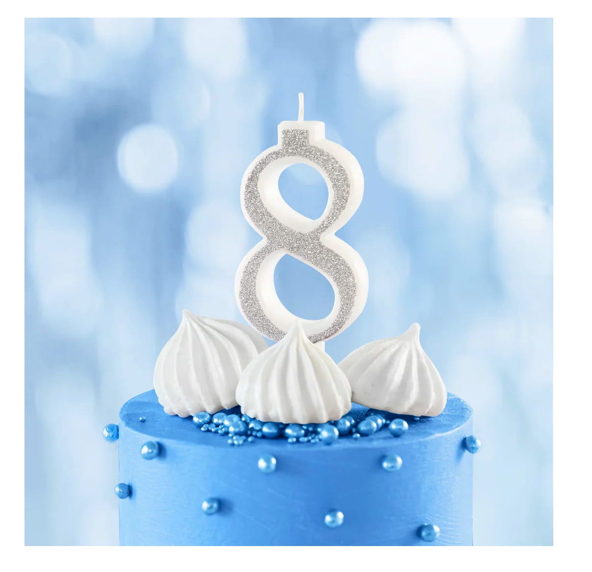 Świeczka na tort cyfra 8 srebrna brokatowa cyfra