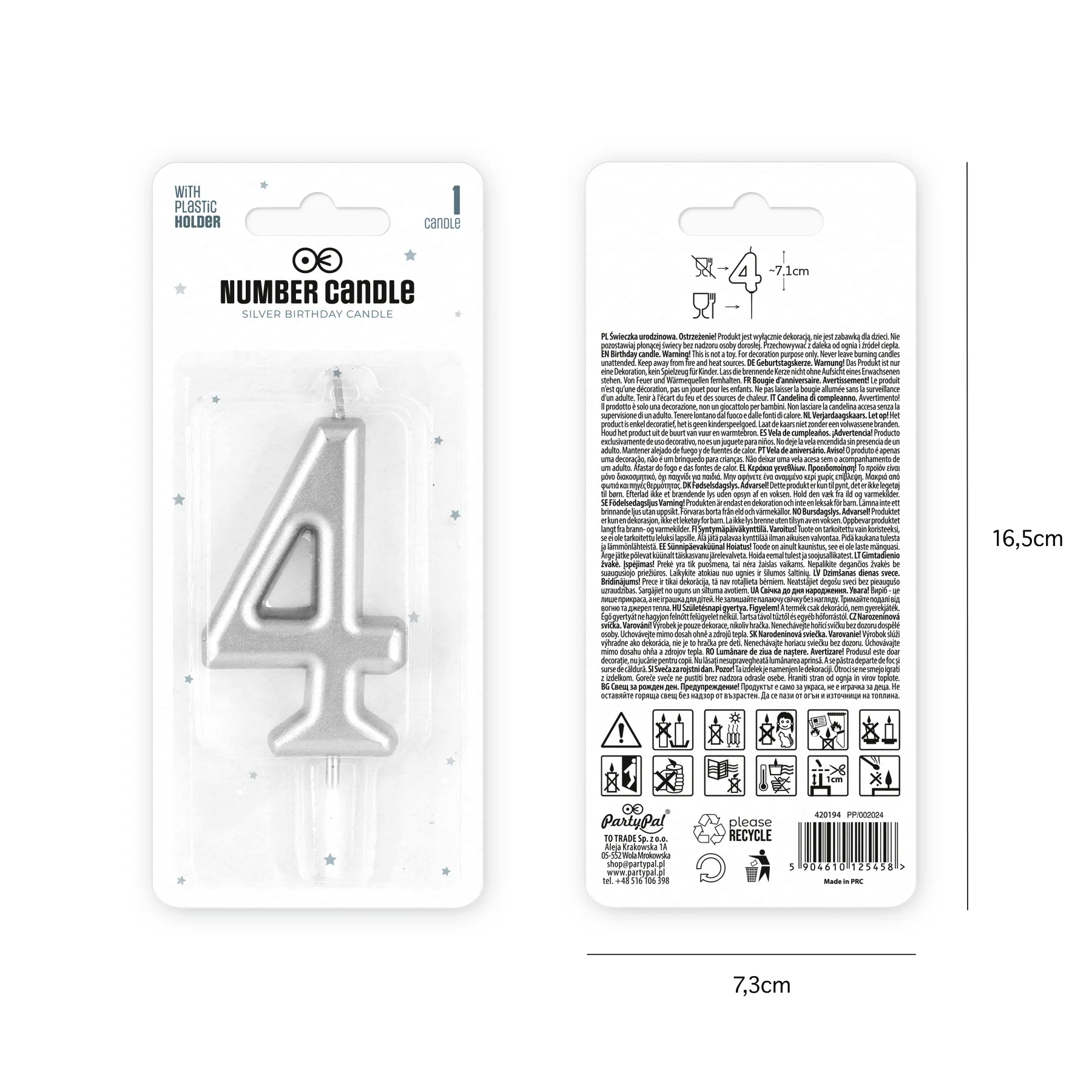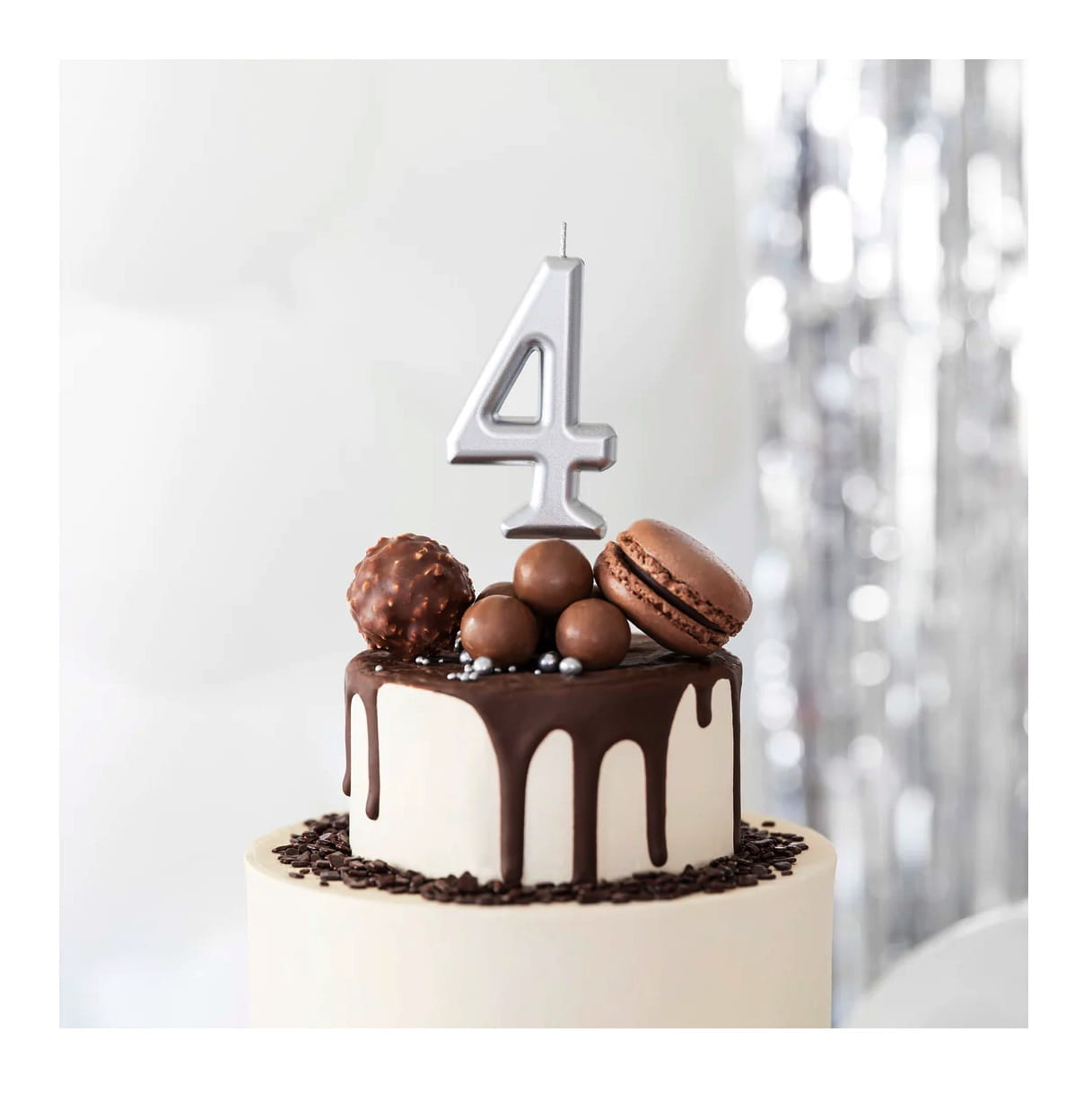 Świeczka cyfra 4 na tort srebrna DEKORACJA urodzinowa 10cm 40stka