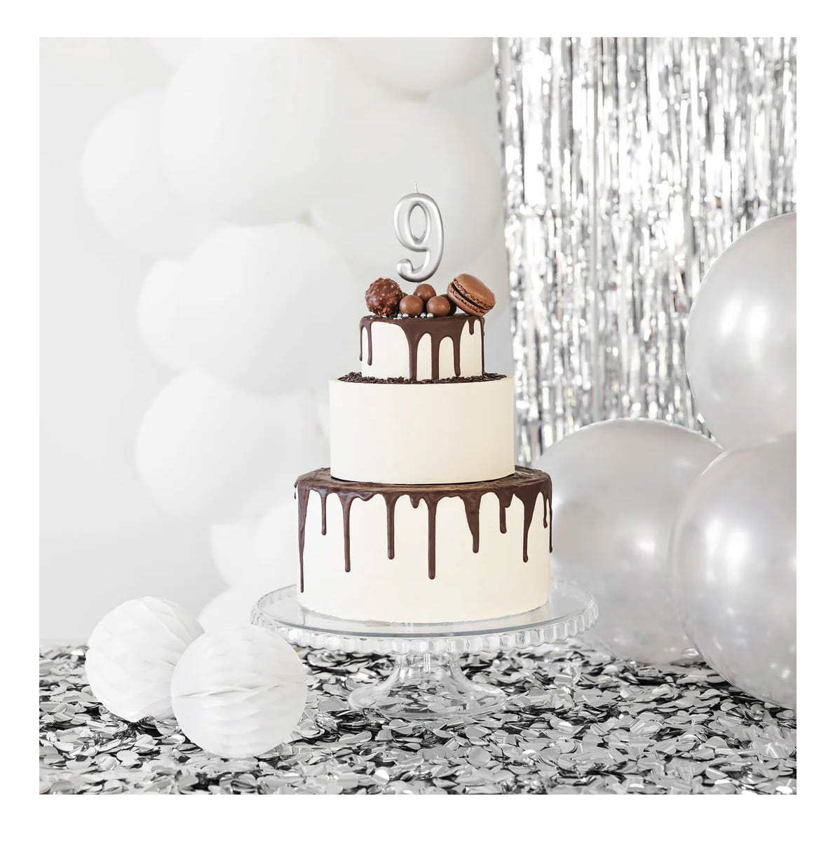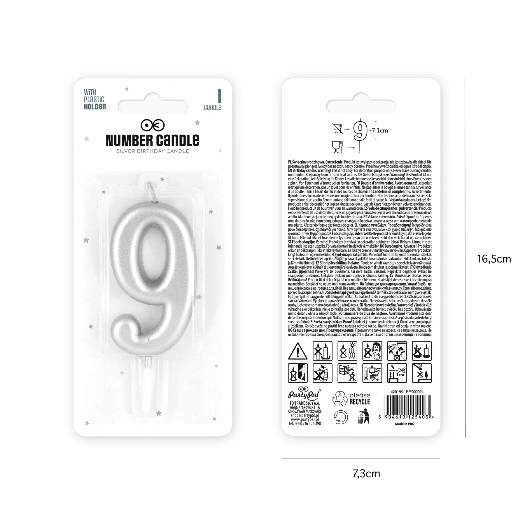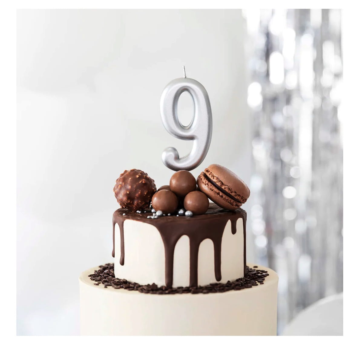 Świeczka cyfra 9 na tort srebrna DEKORACJA urodzinowa 10cm 30stka