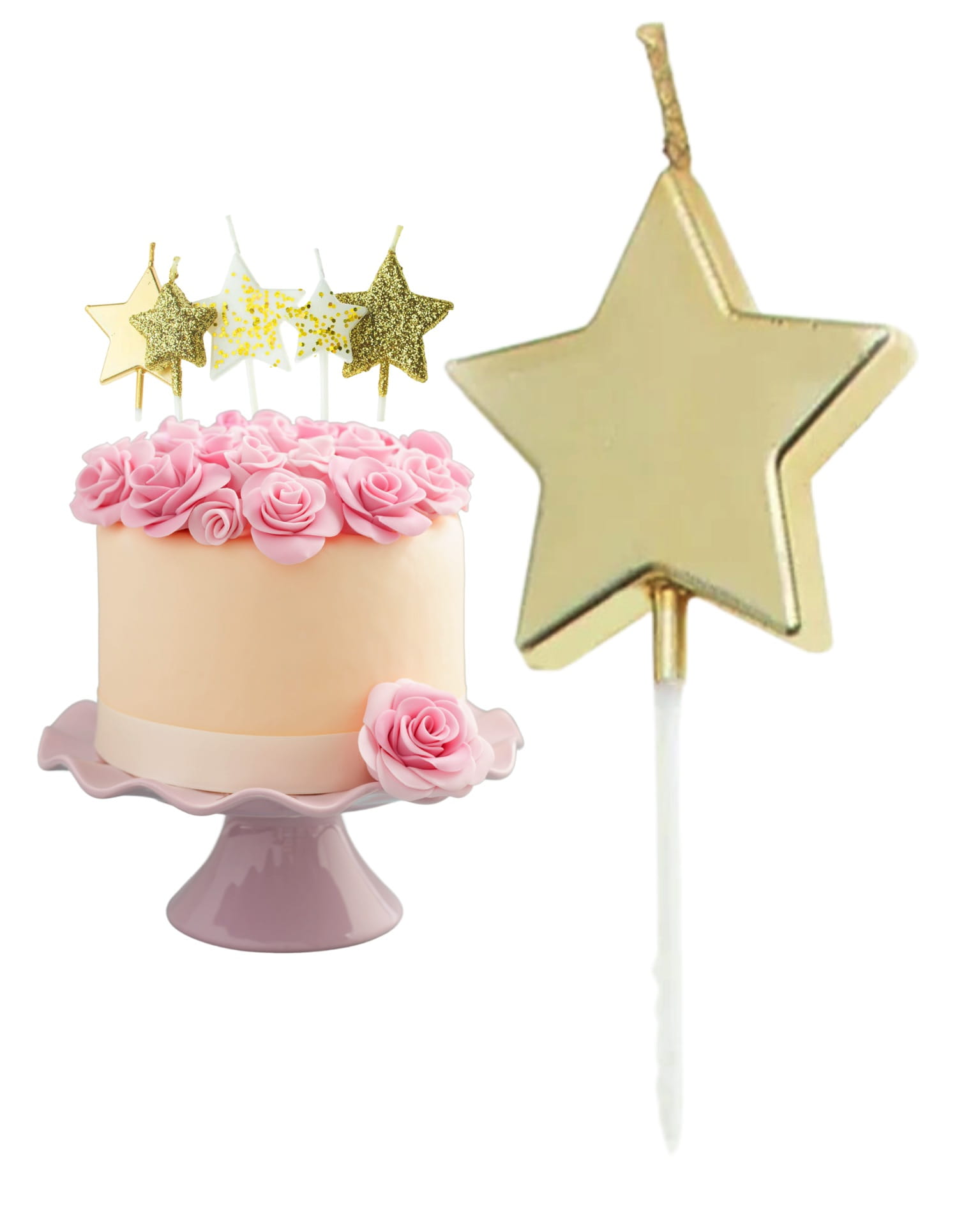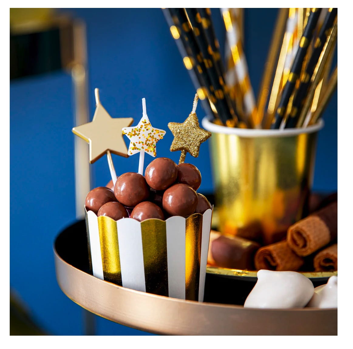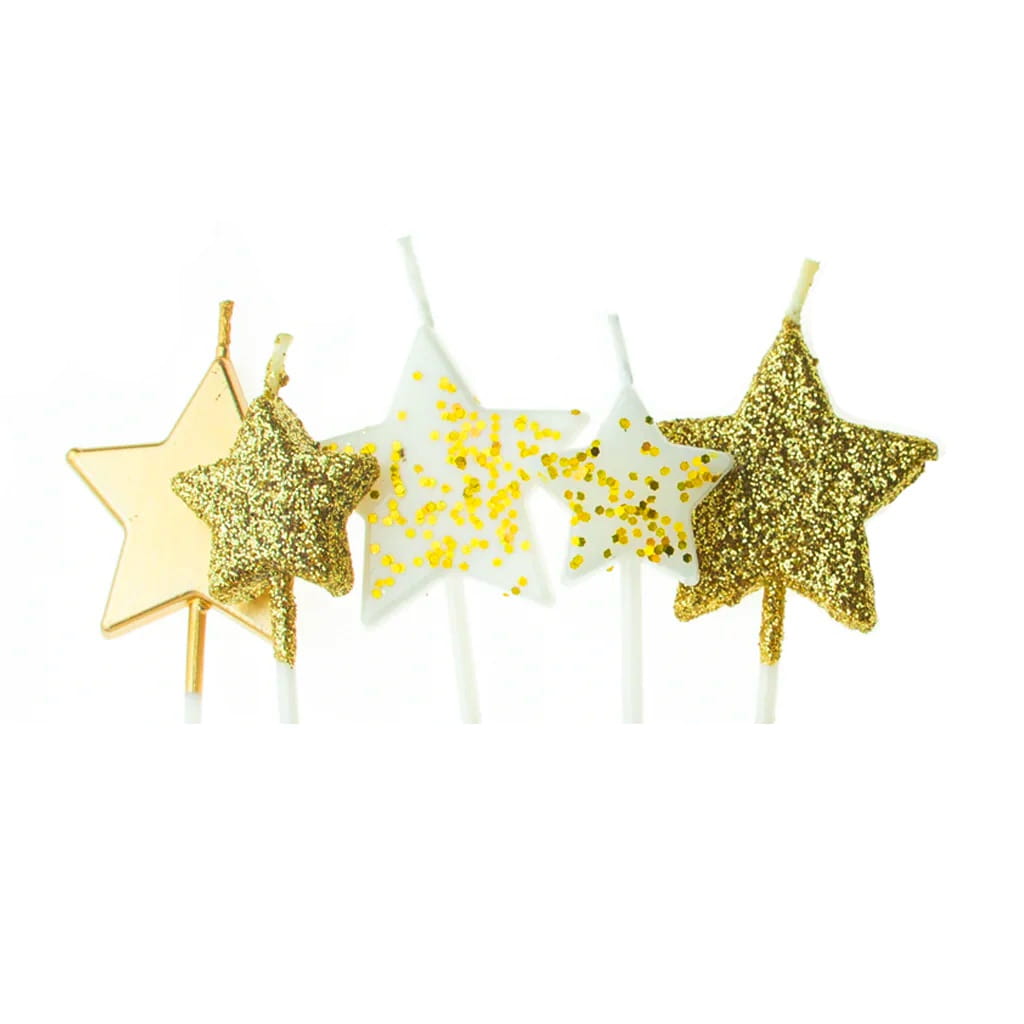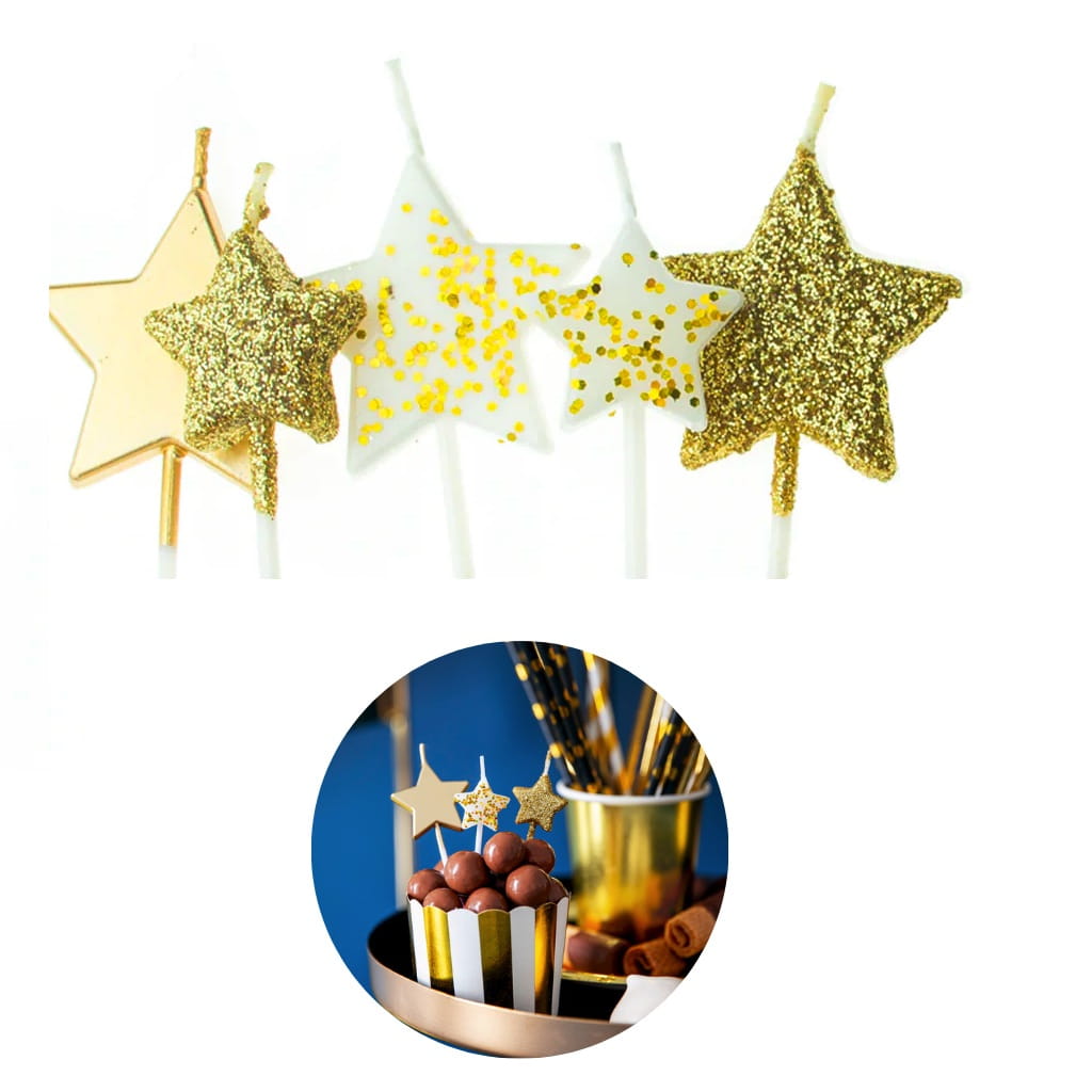 Świeczki na tort złote gwiazdki brokatowe 5 sztuk