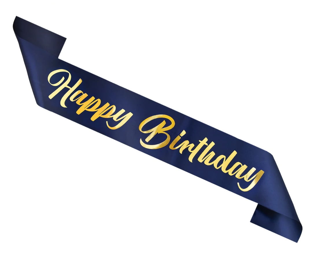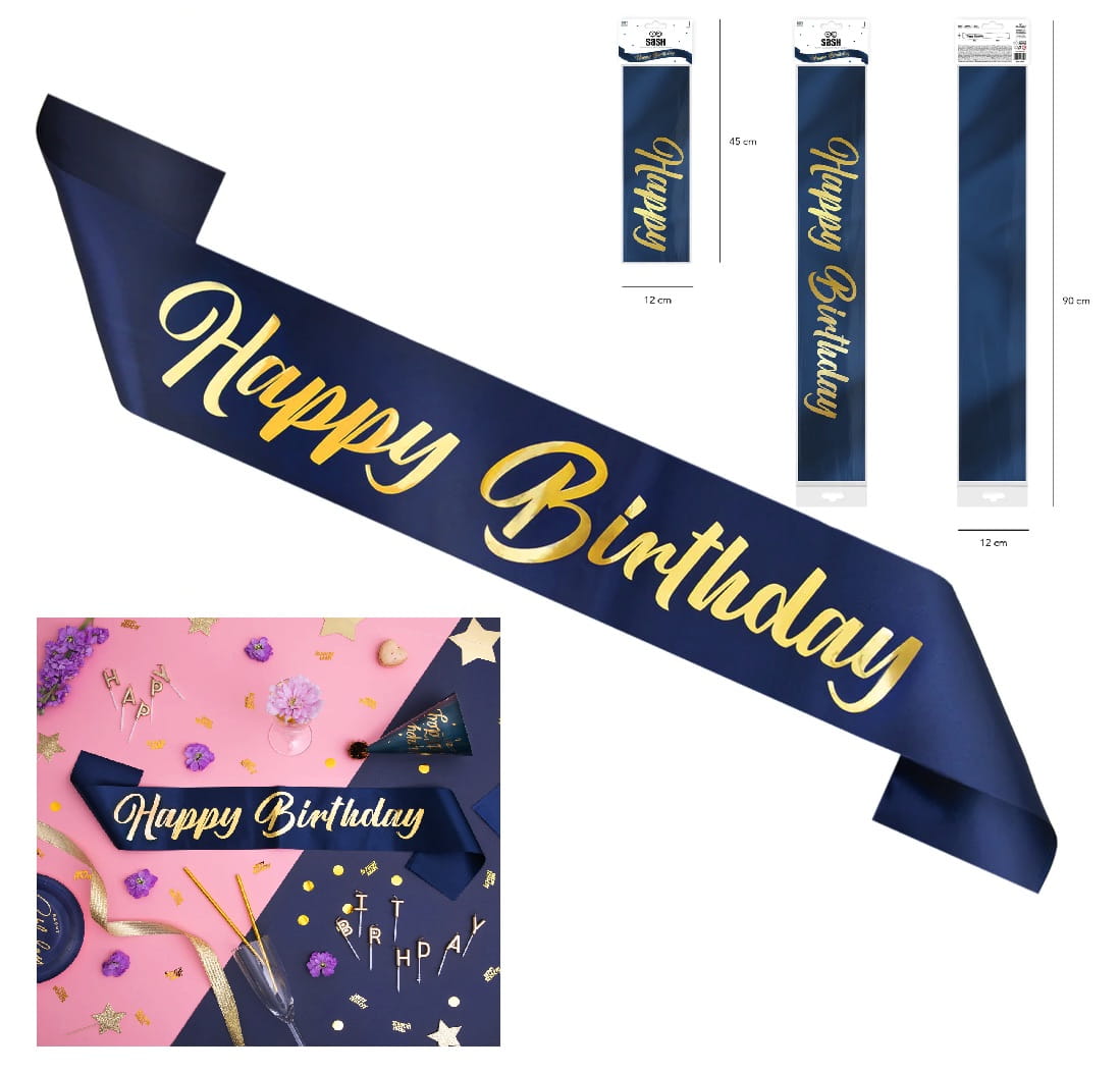 Szarfa urodzinowa Happy Birthday granatowo-złota 10x160cm
