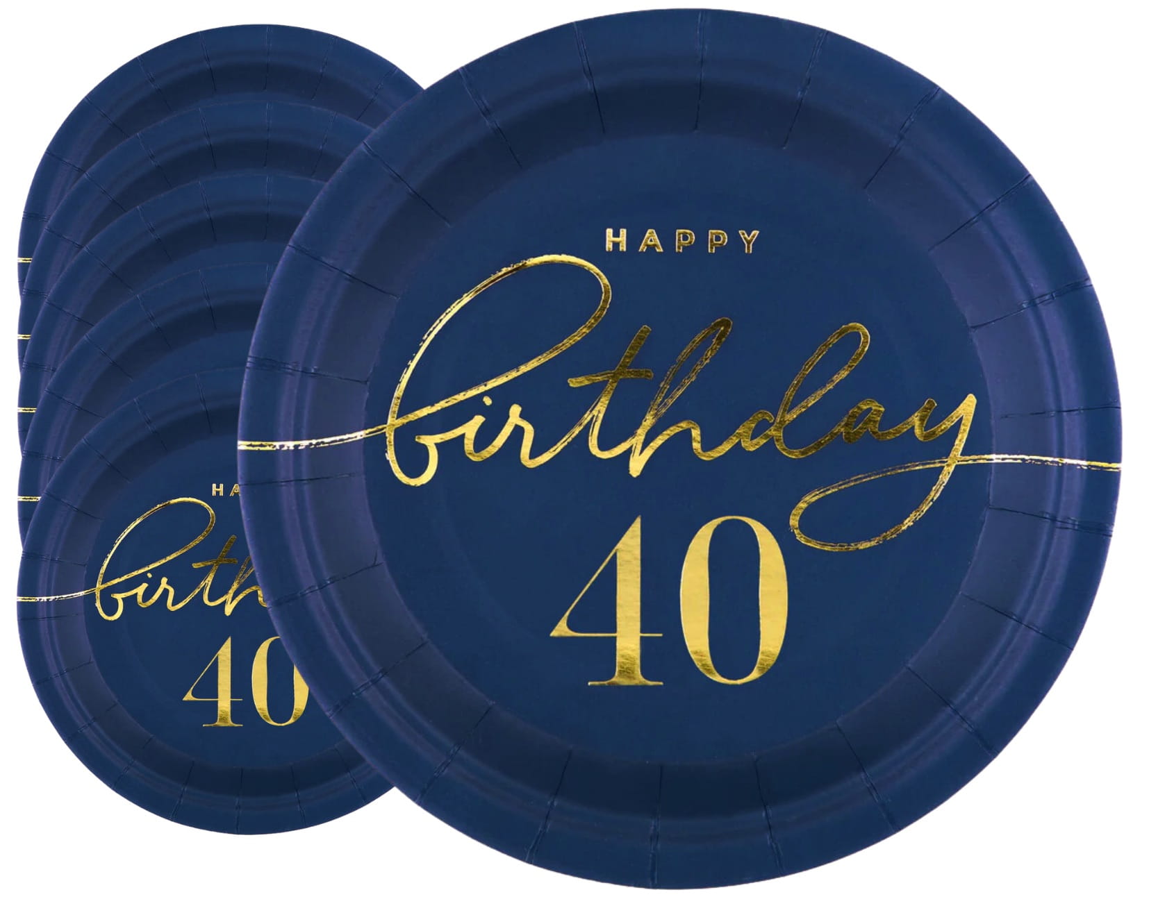 Talerzyki papierowe Happy Birthday 40 granatowy 7cali 6szt. 40stka
