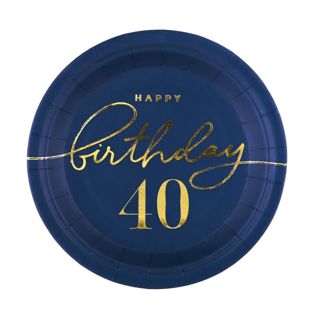 Talerzyki urodzinowe na 40stkę papierowe granatowe 40 urodziny