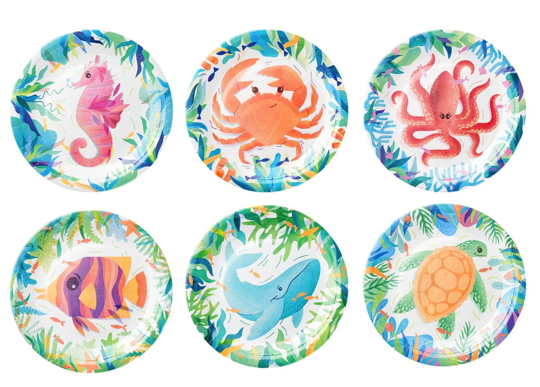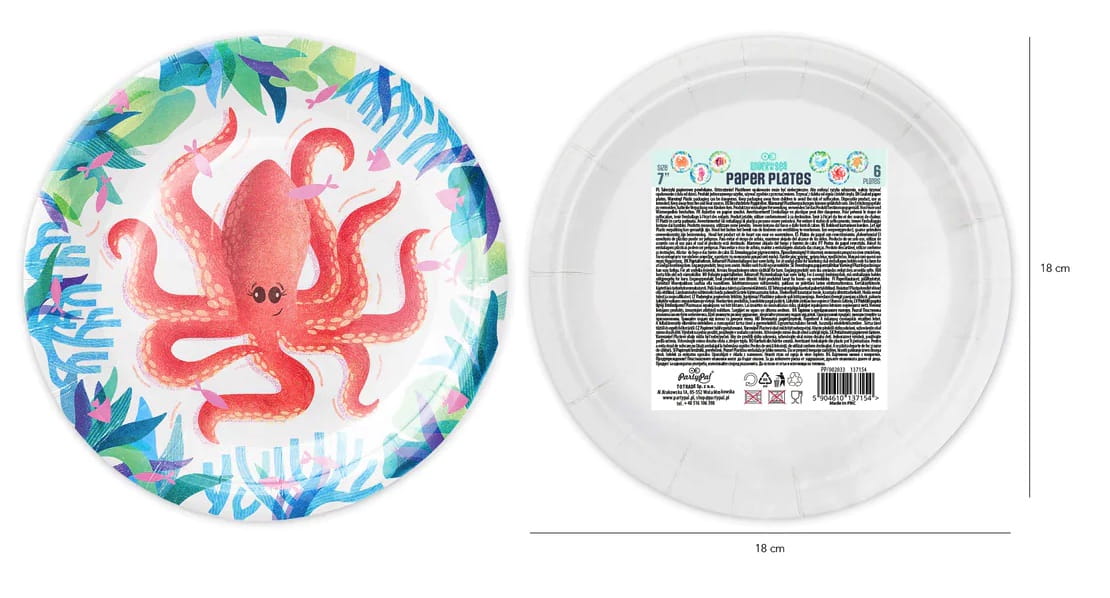 Talerzyki papierowe Ocean Morskie zwierzęta 7cali 6szt. zestaw