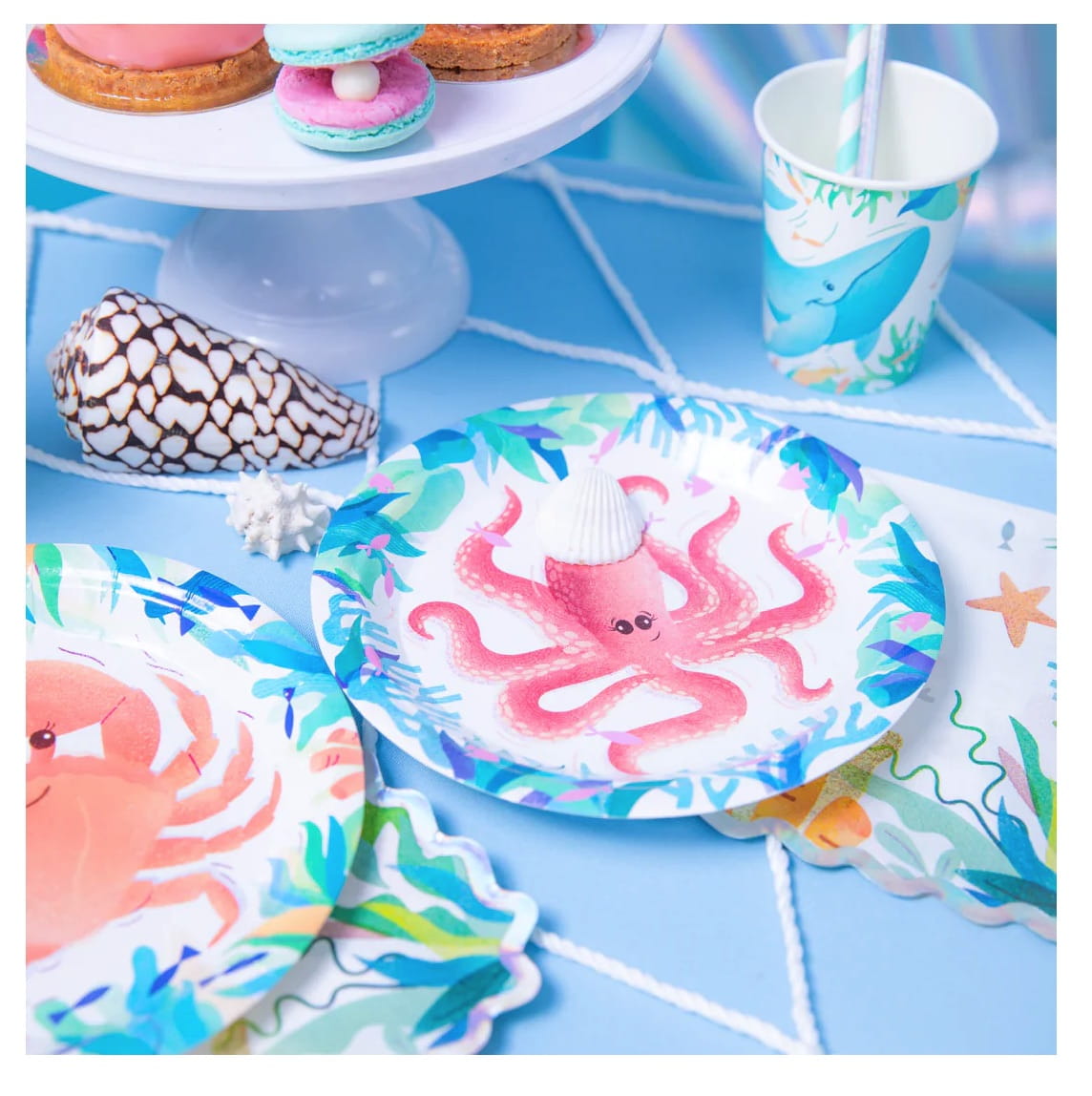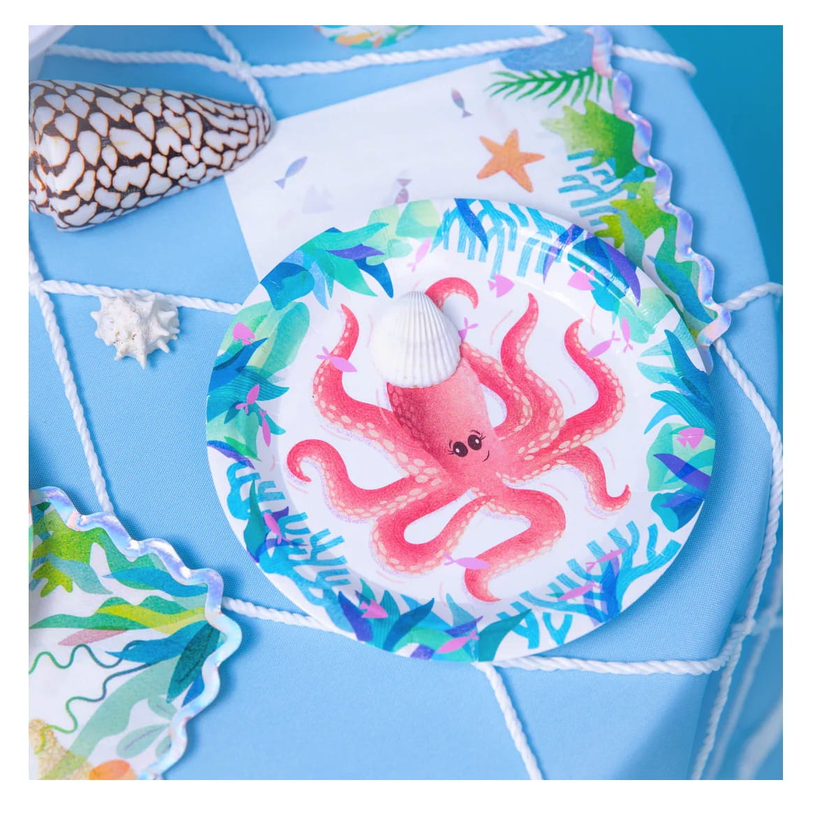 Talerzyki papierowe kolorowe OCEAN podwodne zwierzęta syrenka 6szt MORSKIE