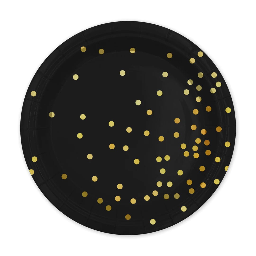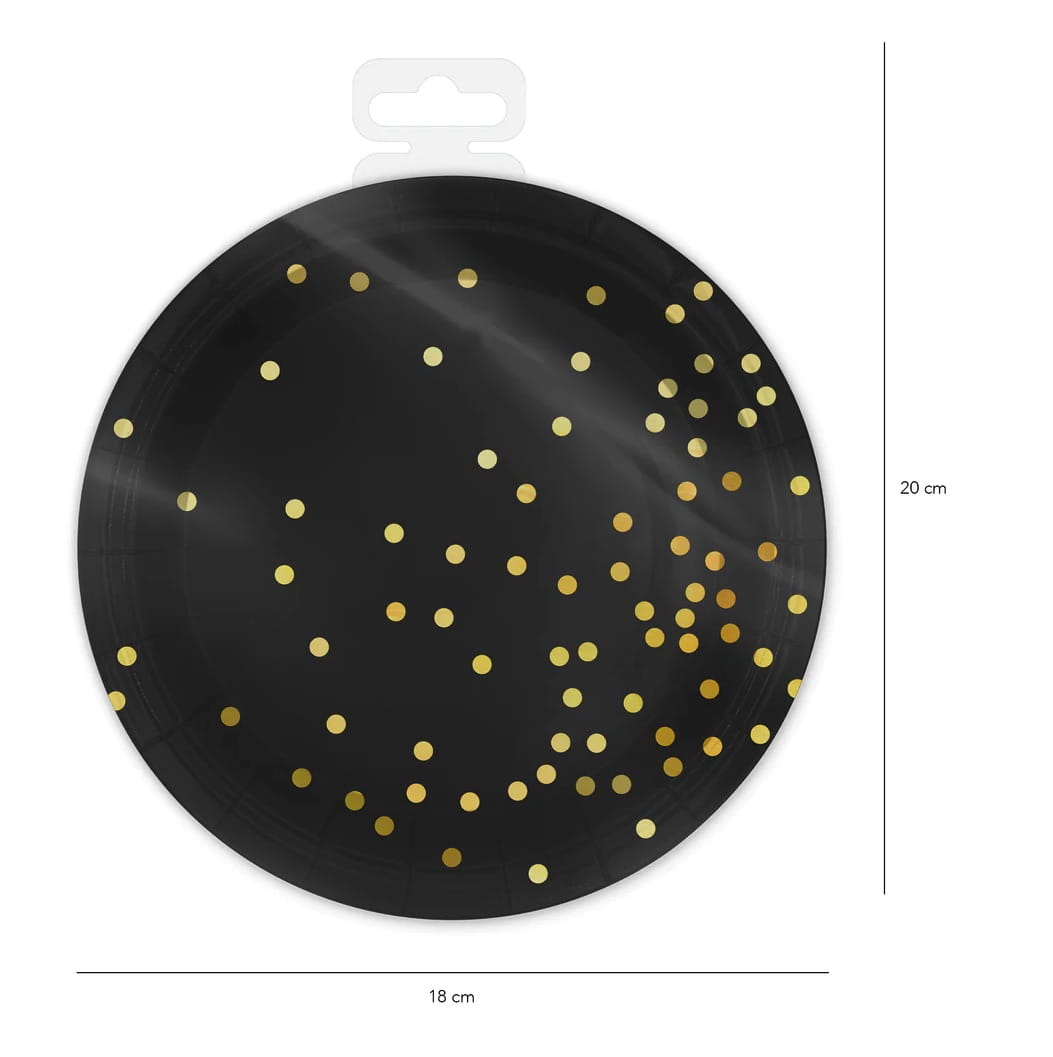 Talerzyki papierowe czarne w złote kropki 7cali 6 sztuk