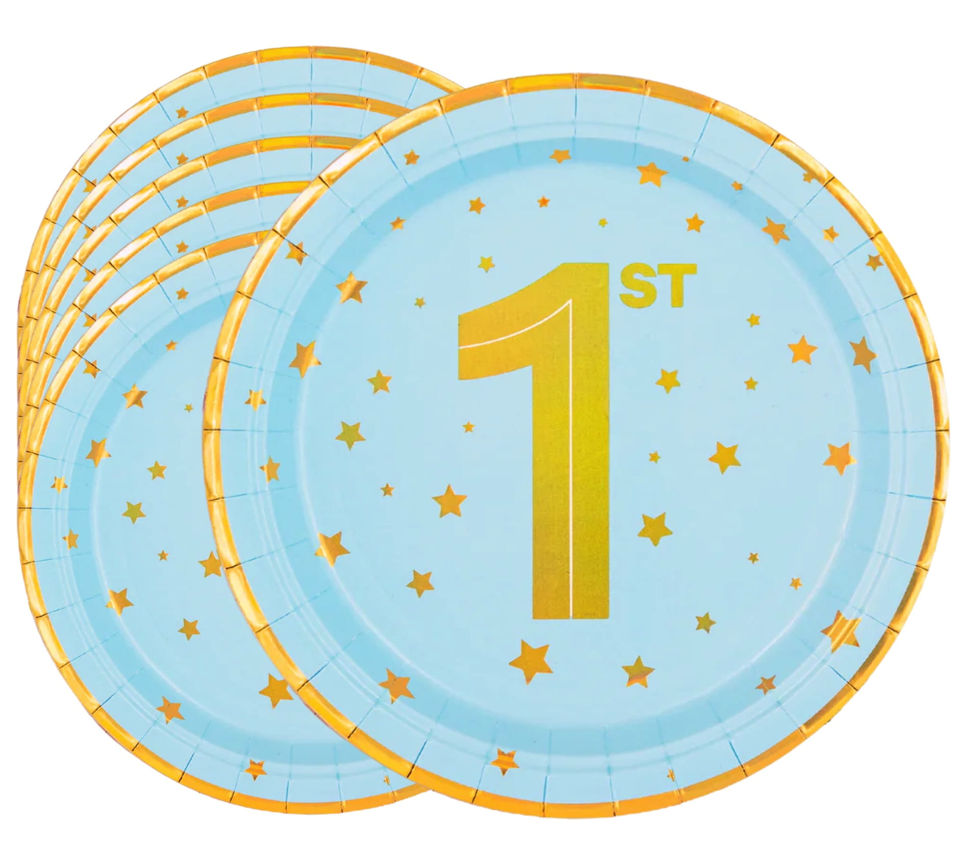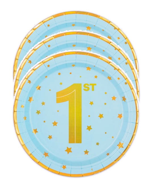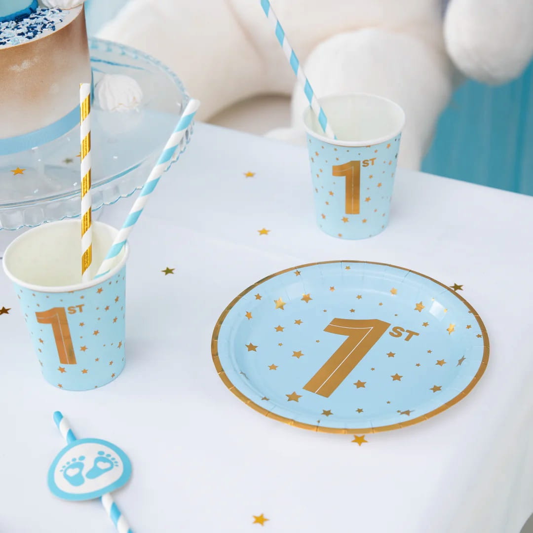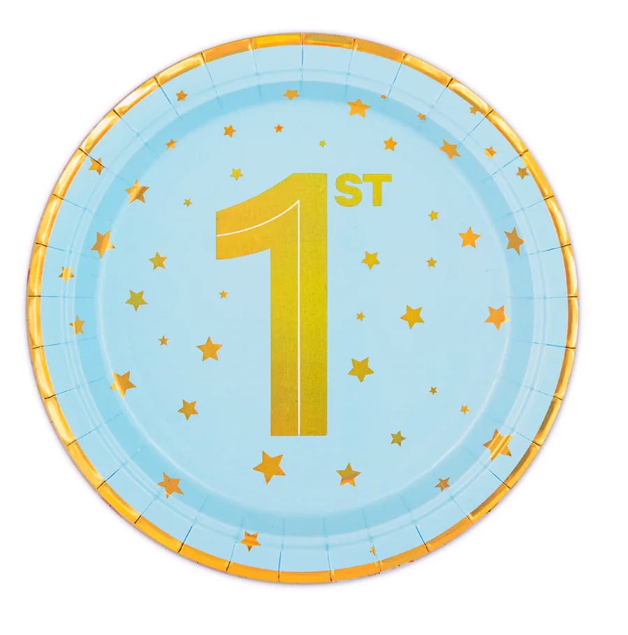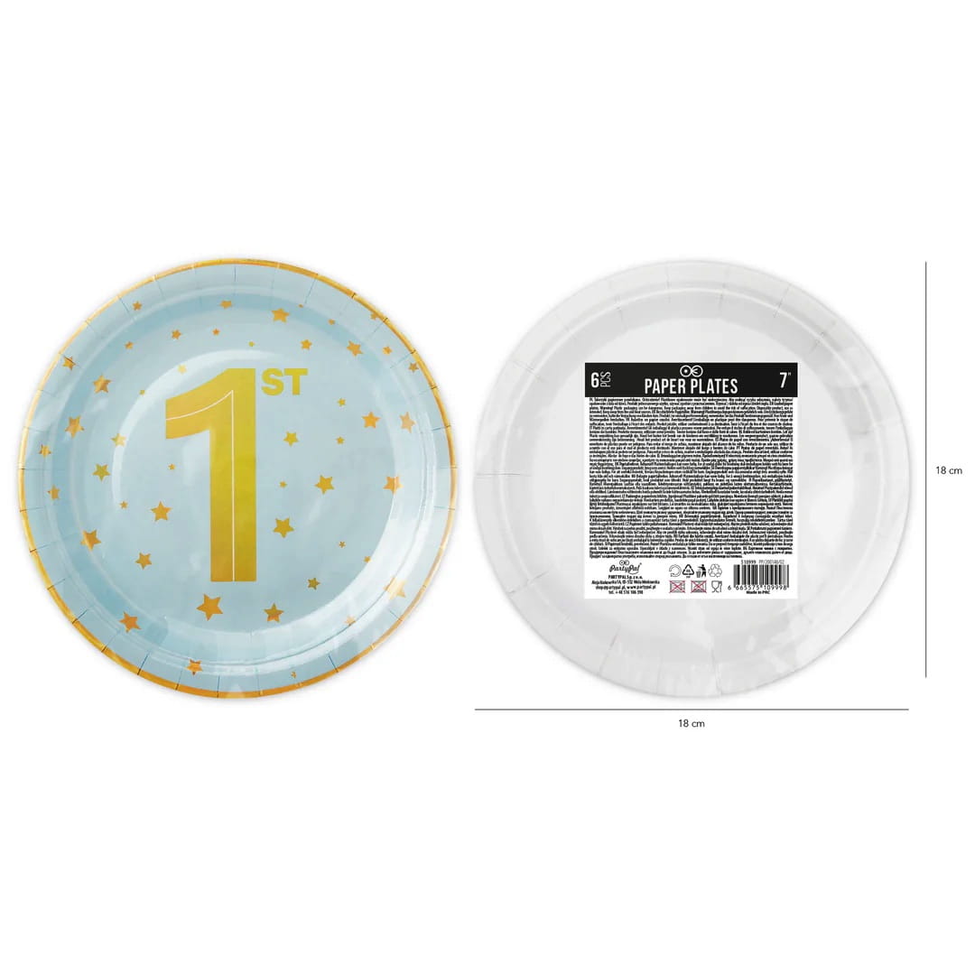 Talerzyki ROCZEK chłopca niebieskie złote gwiazdki 1 cyfra papierowe 6 szt
