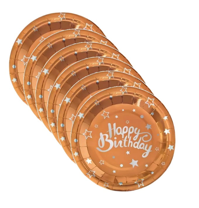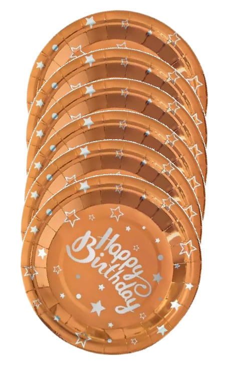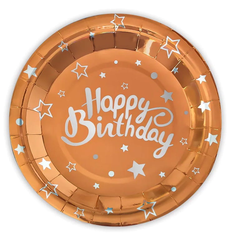 Talerzyki papierowe rose gold Happy Birthday 7cali 6szt.