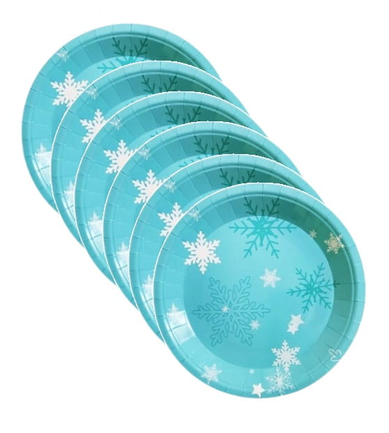 Talerzyki papierowe w śnieżynki 23 cm 6 szt.