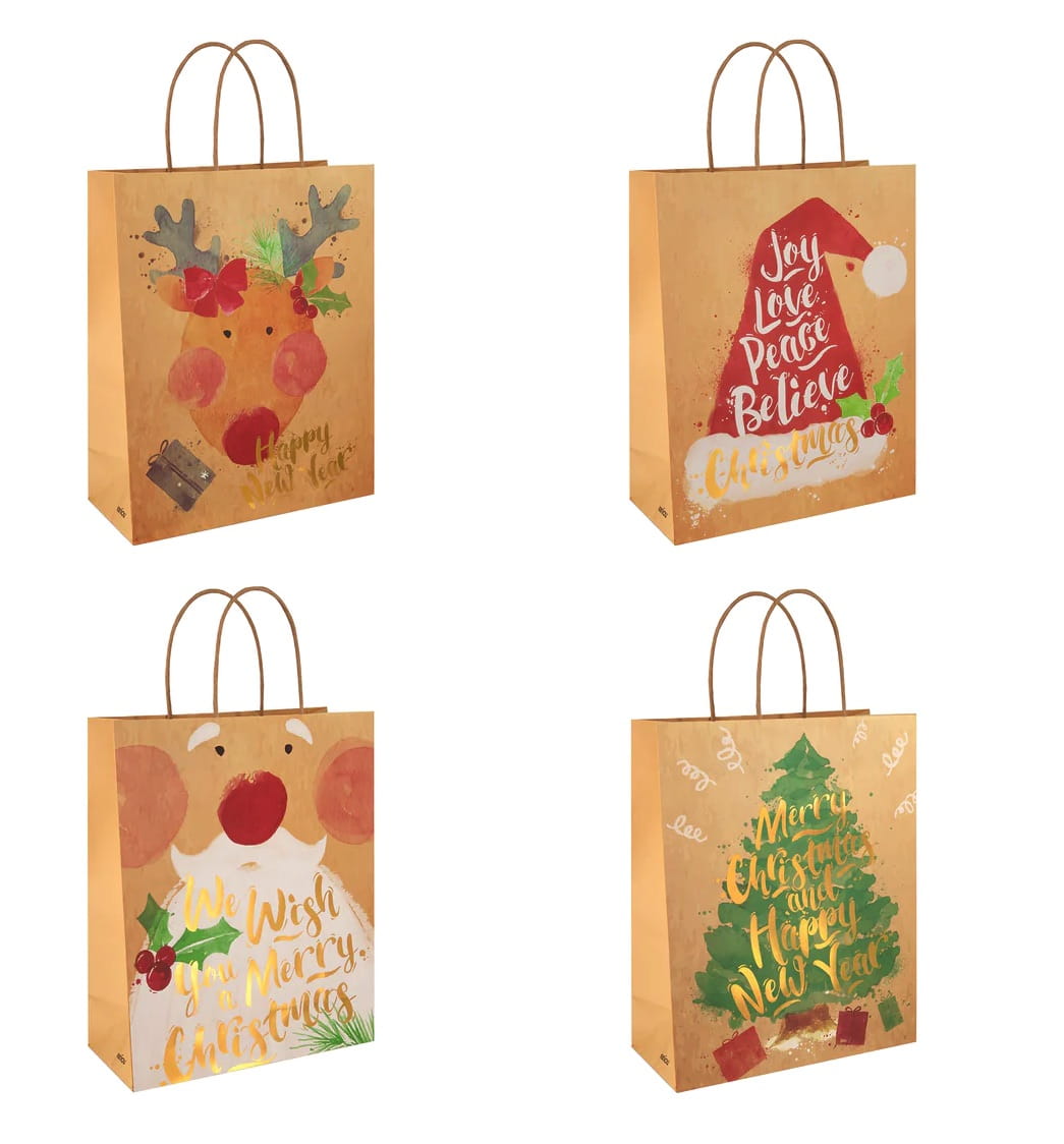 ☃️ Stylowe Wzornictwo: Torebki prezentowe są ozdobione eleganckimi, świątecznymi motywami, które dodają uroku i idealnie pasują do wigilijnej atmosfery.