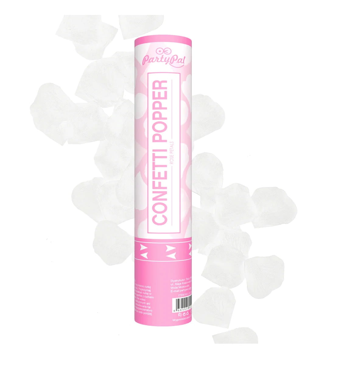 Tuba z Konfetti białe płatki róż 30cm