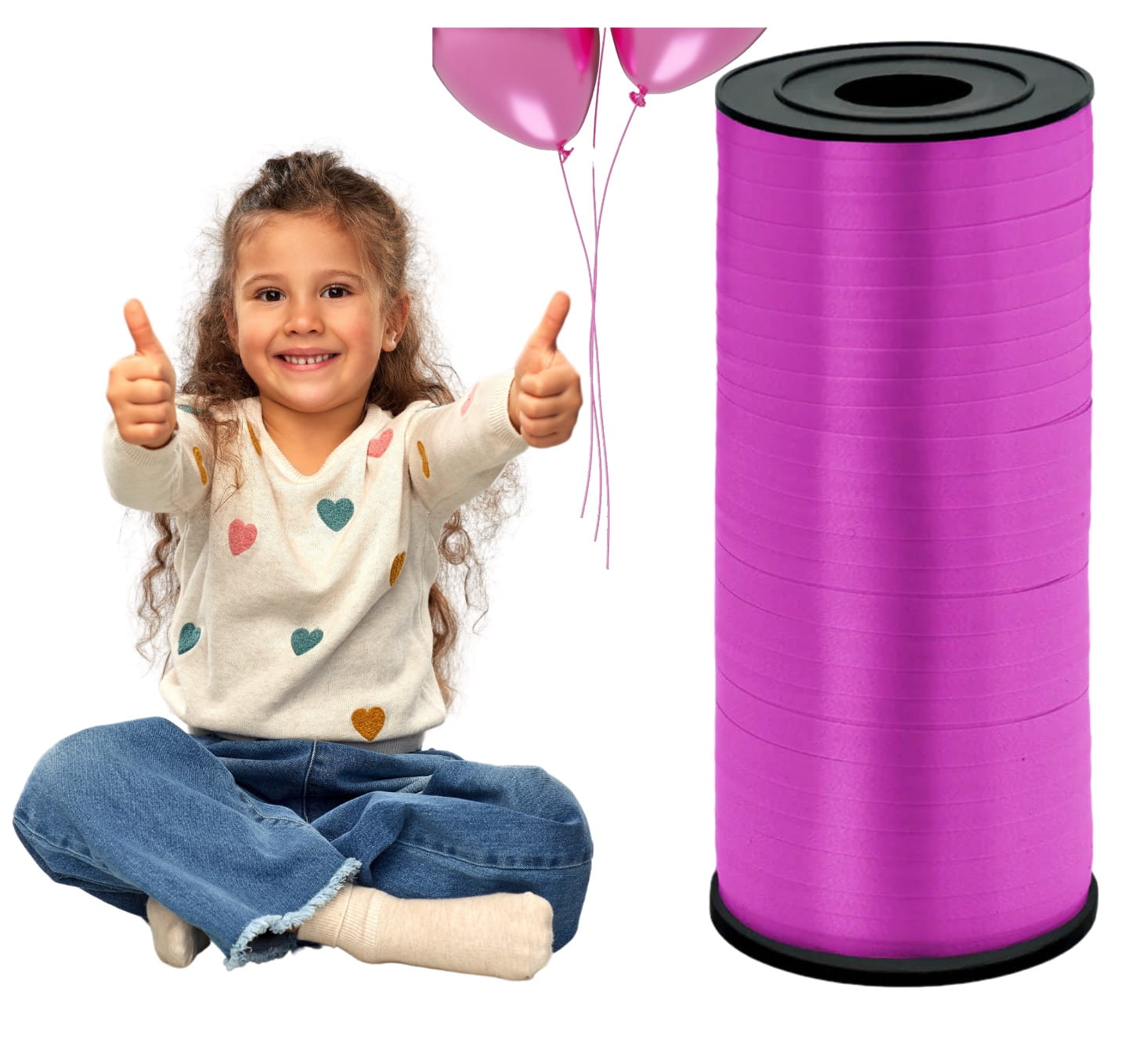Wstążka plastikowa ciemna różowa fuksja do balonów długa 92m