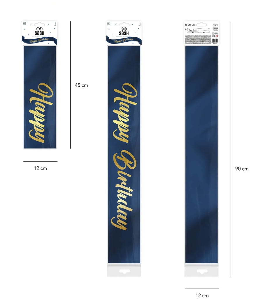 ✔️ szarfa granatowa Happy Birthday 160x10 cm