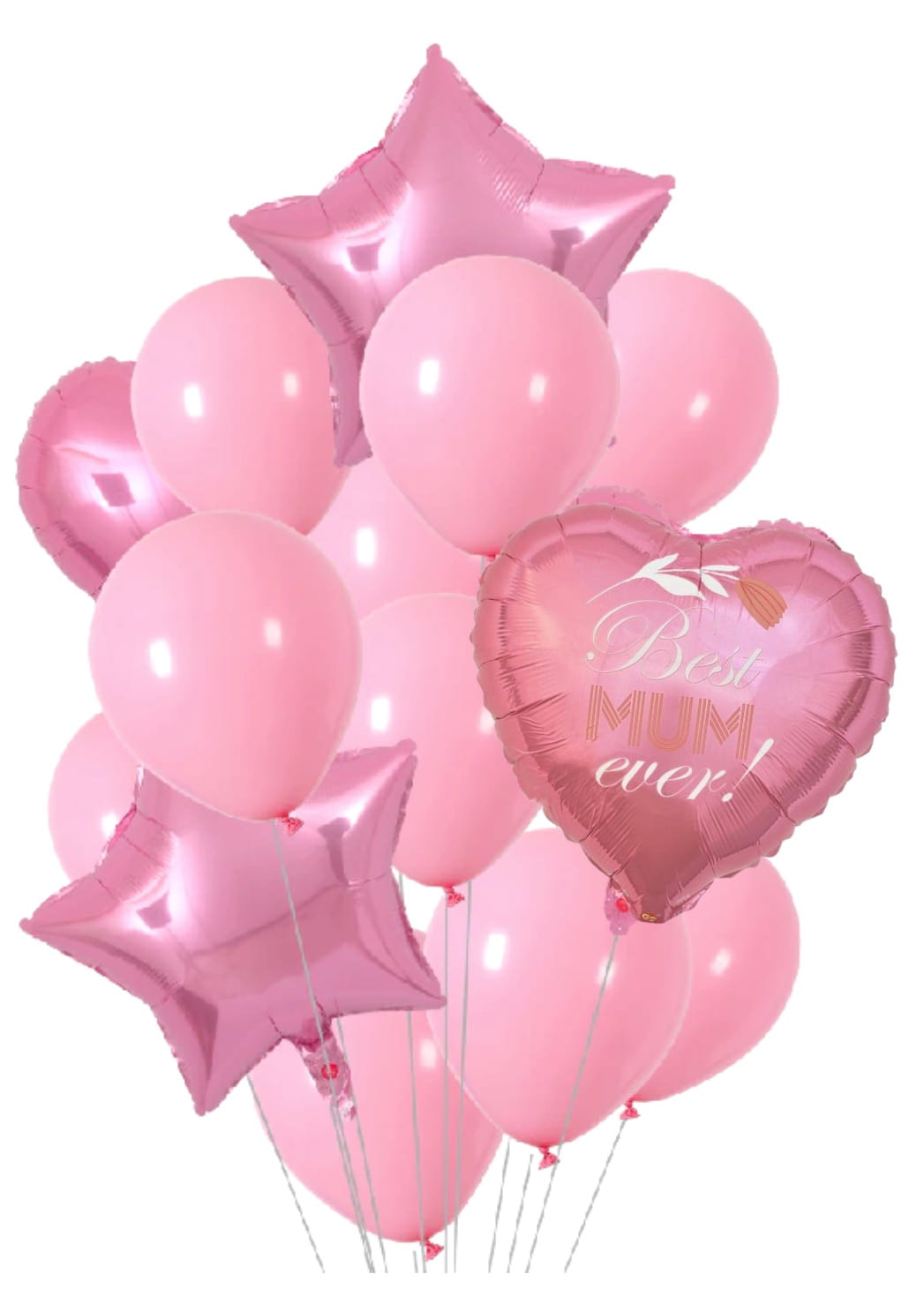 Zestaw Balonów Dzień Mamy RÓŻOWE 14szt Serce Gwiazda Hel PREZENT