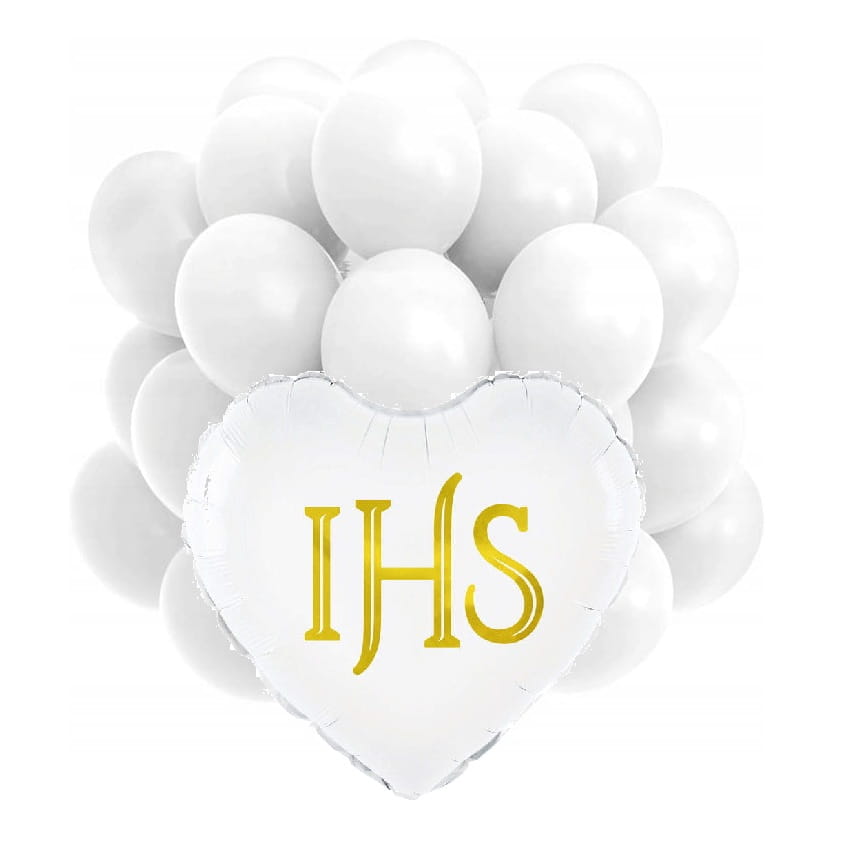 Zestaw Balonów Komunijne Komunia Biało złote Serce IHS Balony Dekoracje