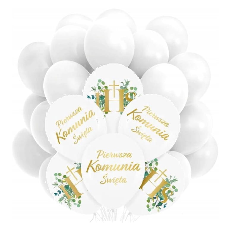 Zestaw Balonów Komunijne Komunia święta Biało złote Balony Dekoracje IHS