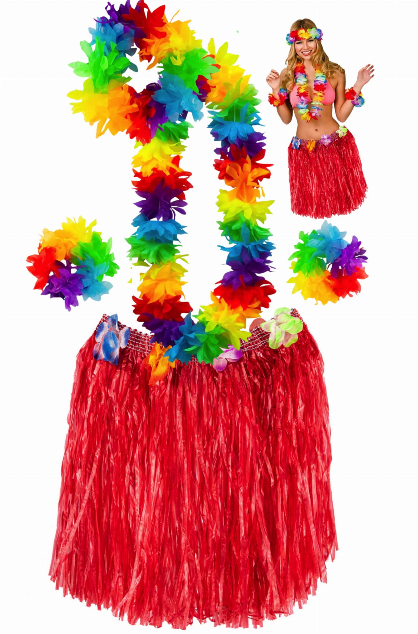 Strój na Hawajską Imprezę Hawaje Party wianek naszyjnik spódniczka czerwona Hibiskus