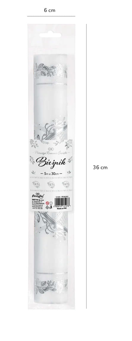 Zestaw Komunia święta bieżnik serwetki biało srebrne IHS Komunijny 5m długi