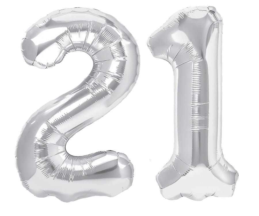 ✔️ balony foliowe srebrne cyfry 2 sztuki "2" i "1" około 70 cm (nie unoszą się po napełnieniu helem)