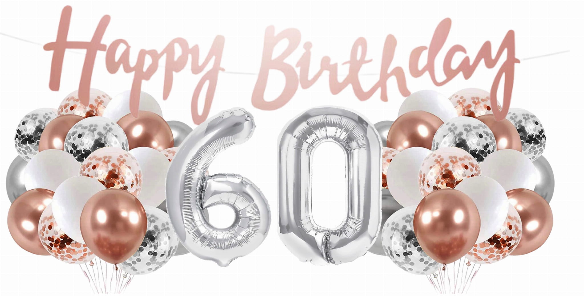 Zestaw balonów 60 urodziny Rose gold srebrne Baner Happy Birthday 60tka