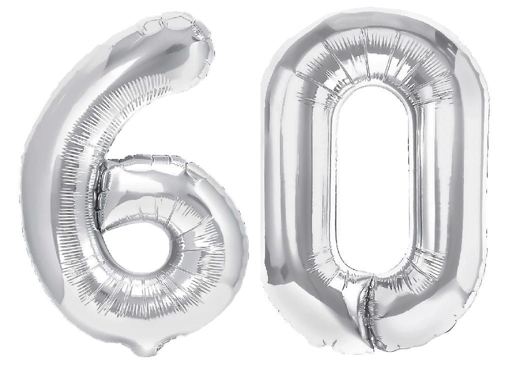 ✔️ balony foliowe srebrne cyfry 2 sztuki "6" i "0" około 70 cm (nie unoszą się po napełnieniu helem)
