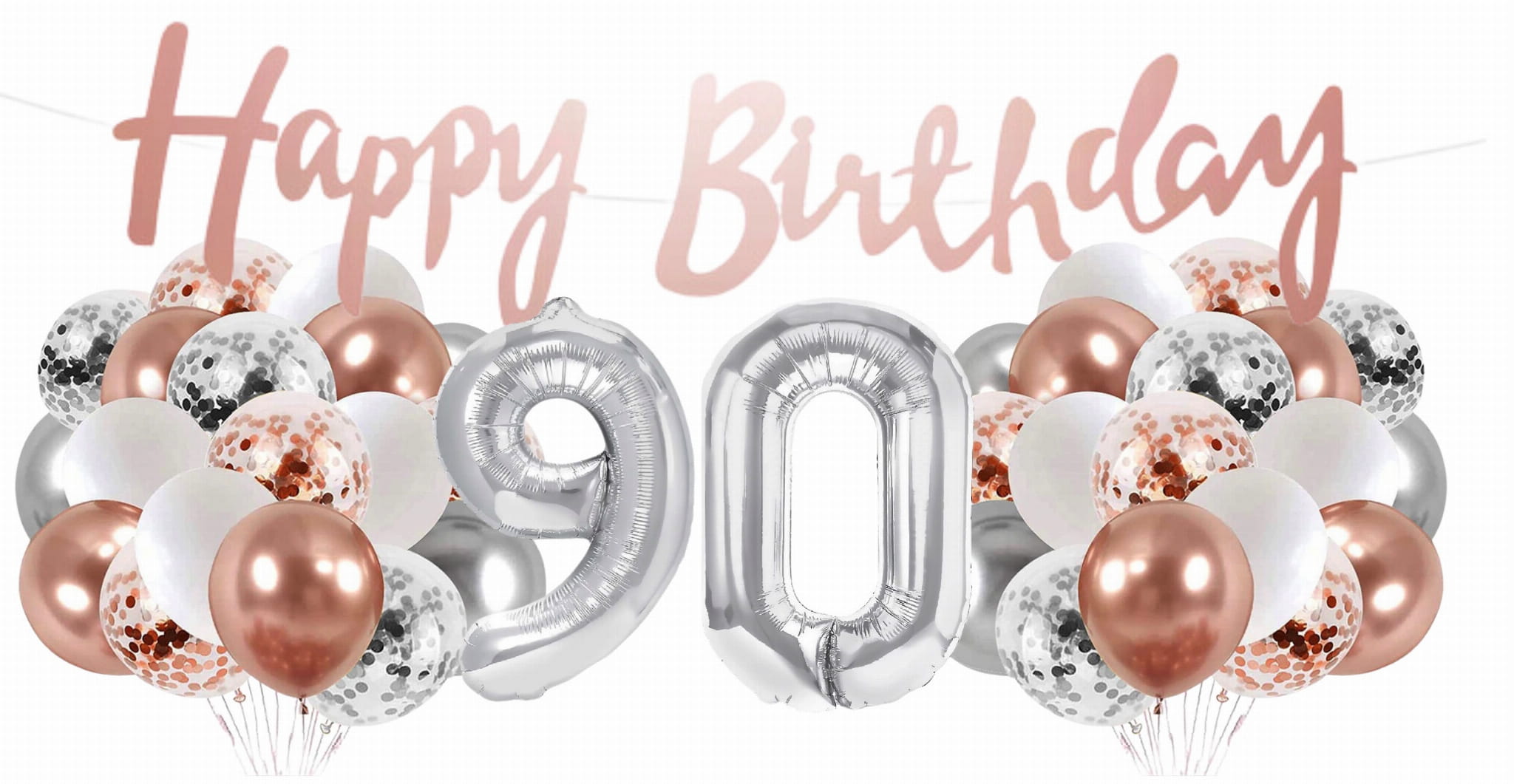 Zestaw balonów 90 Urodziny Baner Happy Birthday srebrne balony cyfry