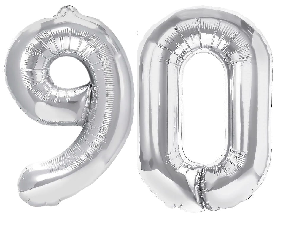 ✔️ balony foliowe srebrne cyfry 2 sztuki "9" i "0" około 70 cm (nie unoszą się po napełnieniu helem)